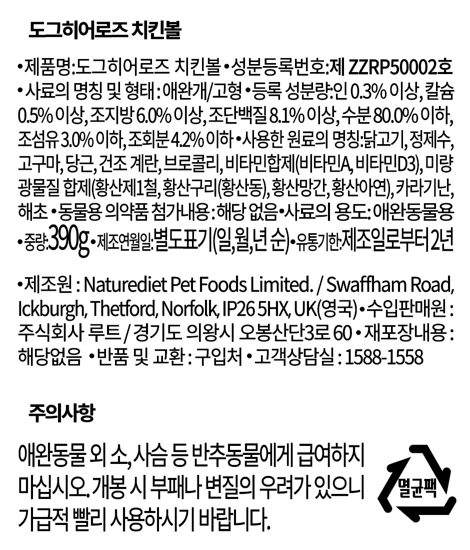 닭고기 함량 61%, 100% 휴먼그레이드, 글루텐 프리, 이탈리아산 습식사료