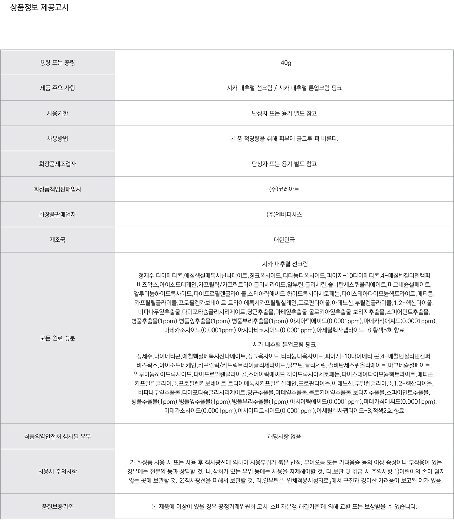 가. 화장품 사용 시 또는 사용 후 직사광선에 의하여 사용부위가 붉은 반점, 부어오름 또는 가려움증 등의 이상증상이나 부작용이 있는 경우에는 사용을 중지하여 피부과 전문의 등에게 상담하십시오.