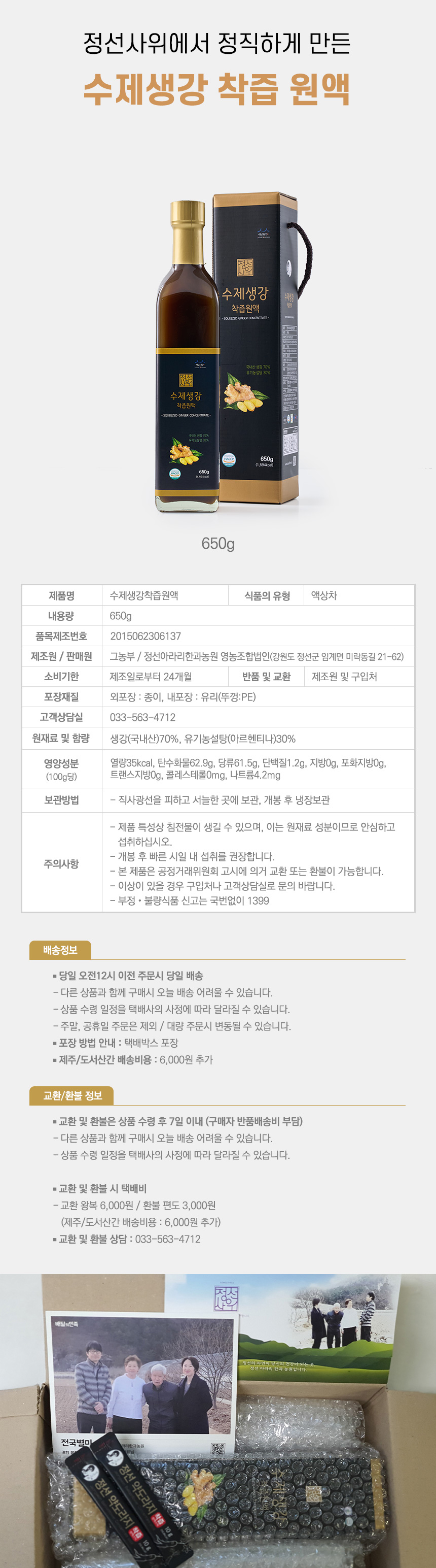정선사위 국내산 햇생강 착즙원액 650g / 1병입