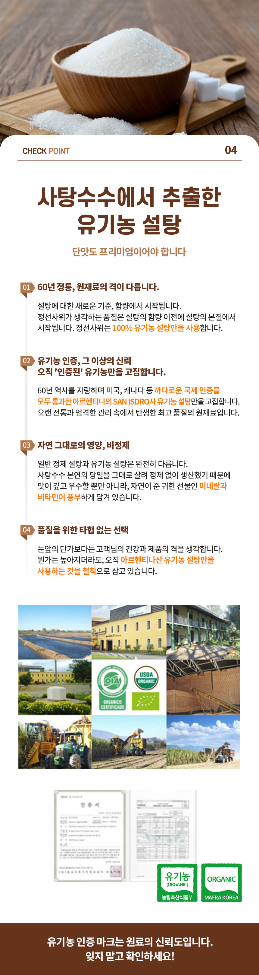 유기농 인증 아르헨티나산 사탕수수 설탕 사용