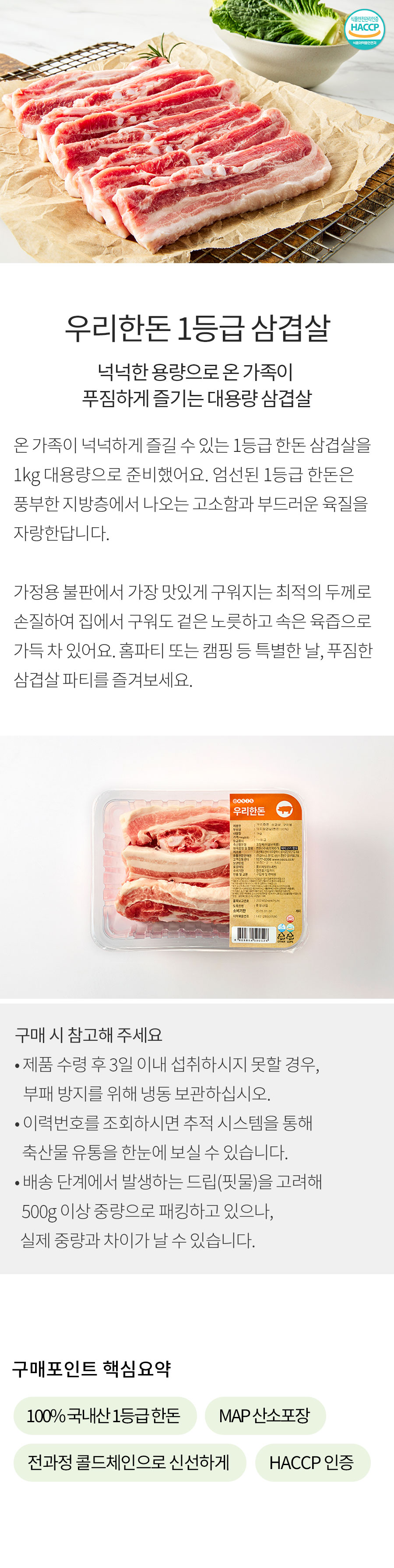 우리한돈 1등급 삼겹살(구이용, 1kg)