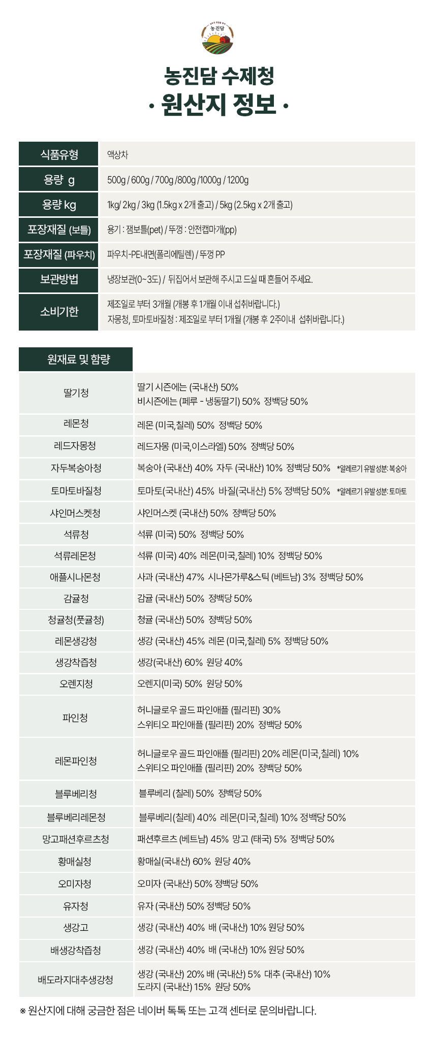 원재료 및 함량