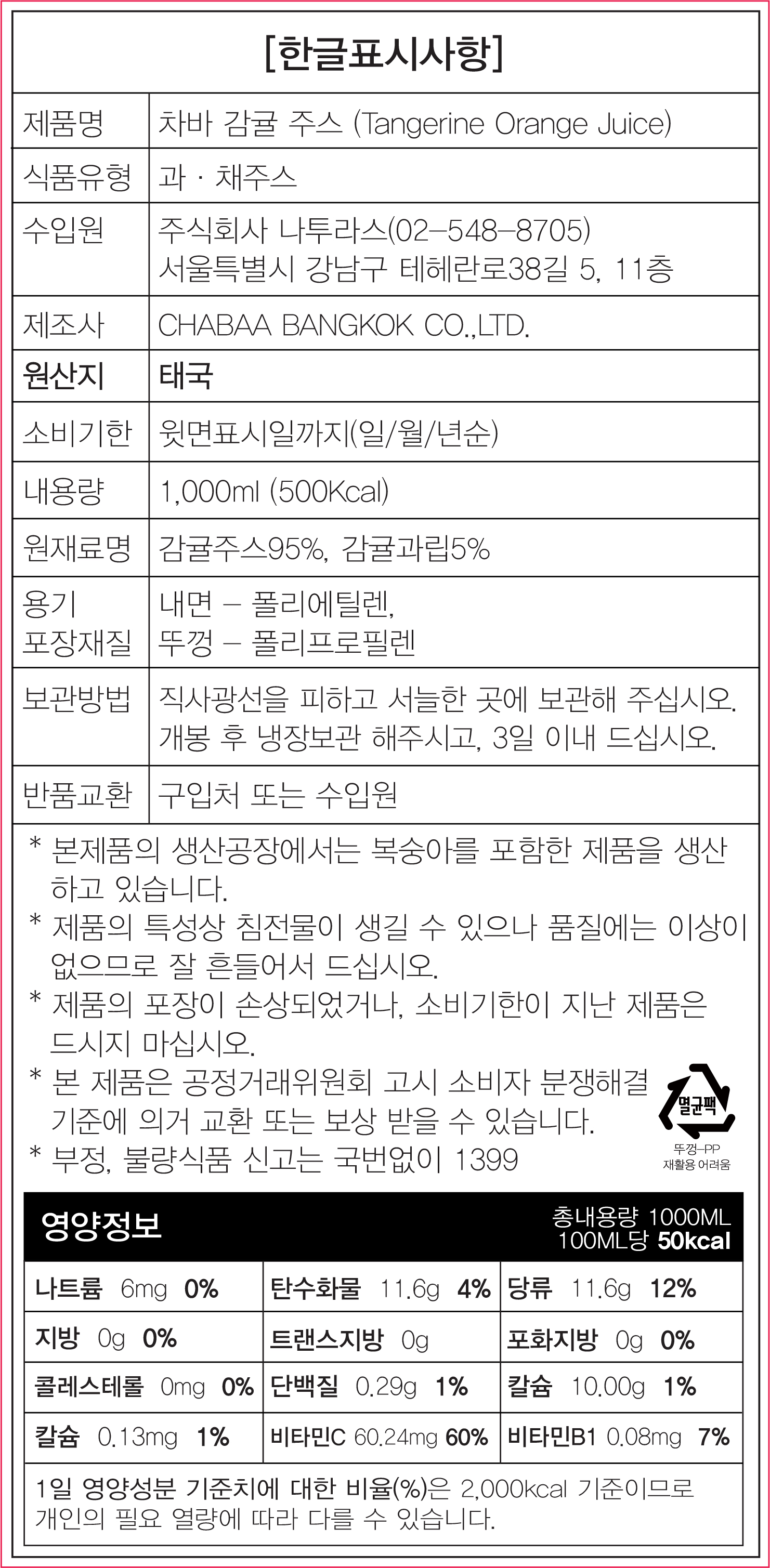 [입점특가] 차바 감귤 주스