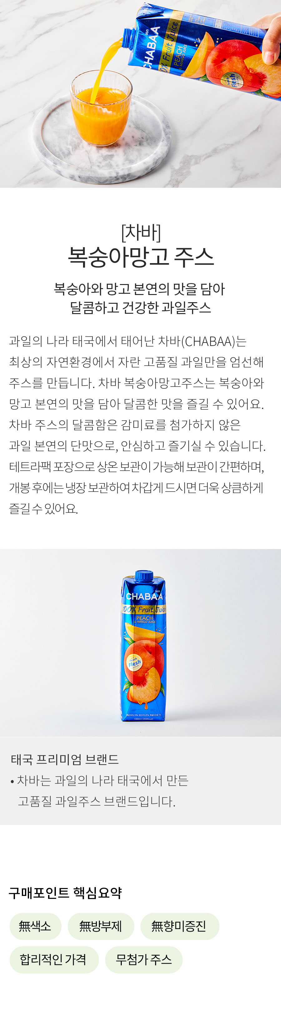복숭아와 망고 본연의 맛을 담아 달콤한 맛 건강한 과일주스