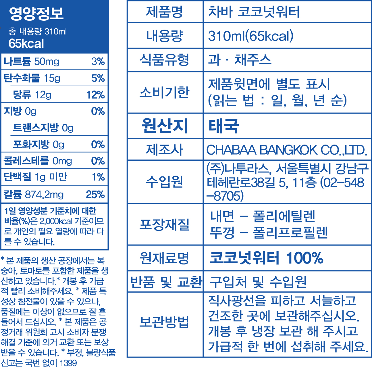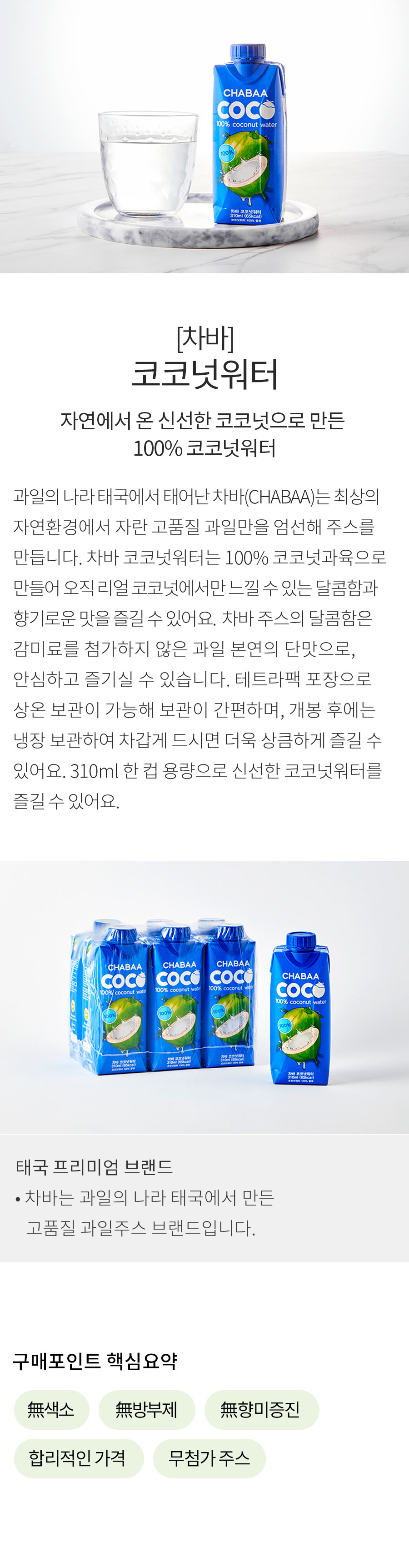 [입점특가] 차바 코코넛워터 (310ml x 6개)
