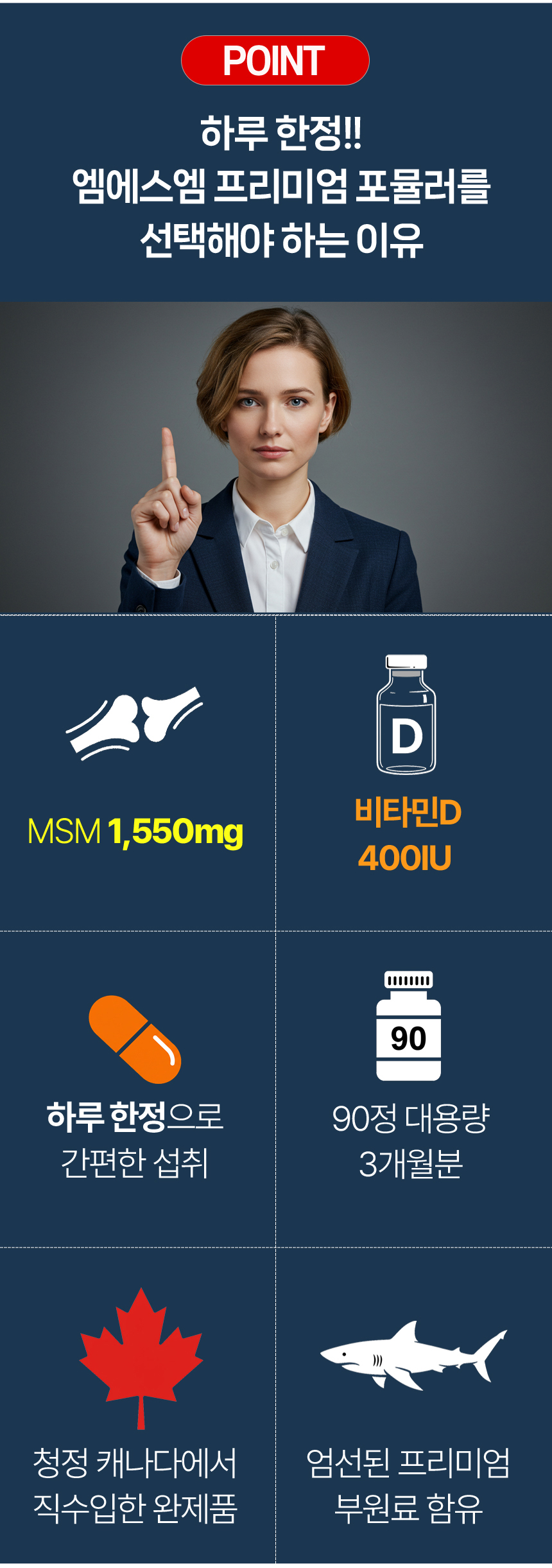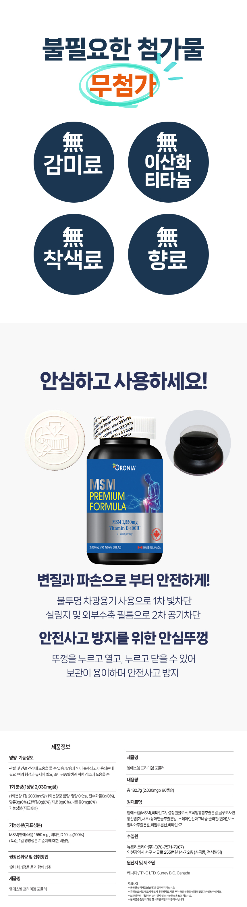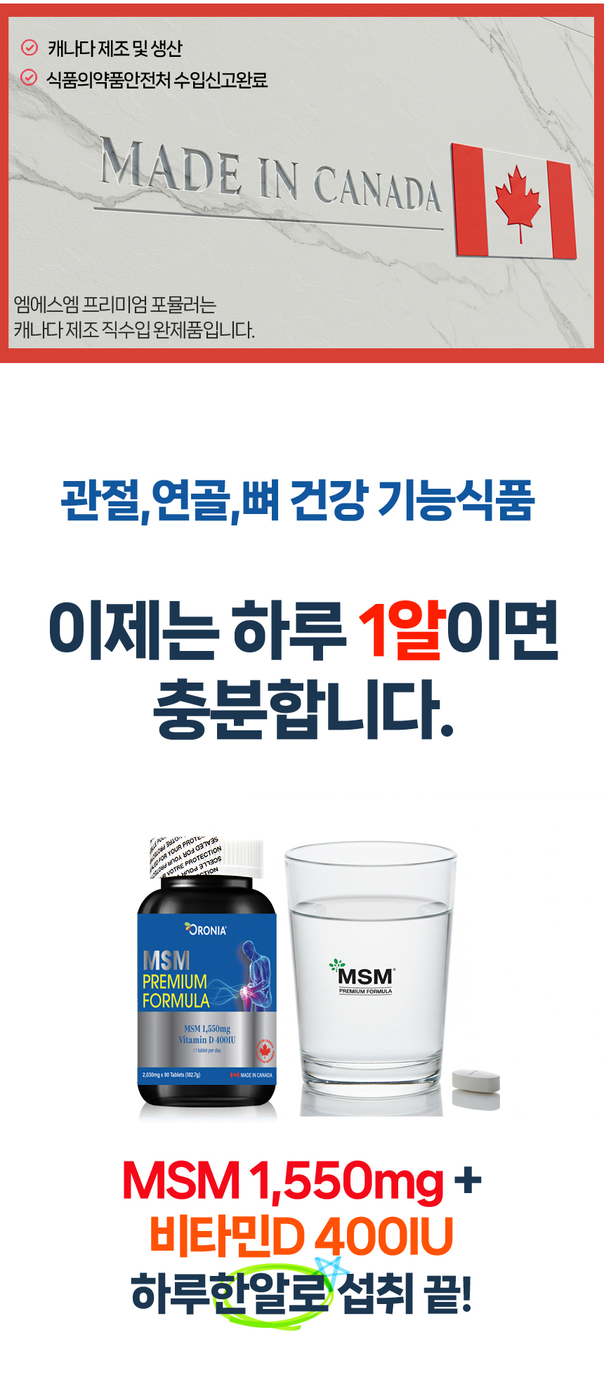 오로니아 MSM 비타민D 상어연골 초록입홍합 엠에스엠 프리미엄 포뮬러 90정 관절 뼈 건강