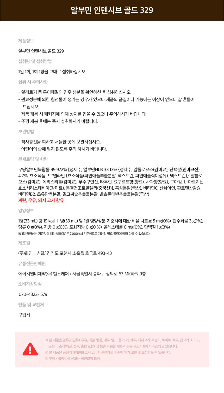알부민 인텐시브 골드 329