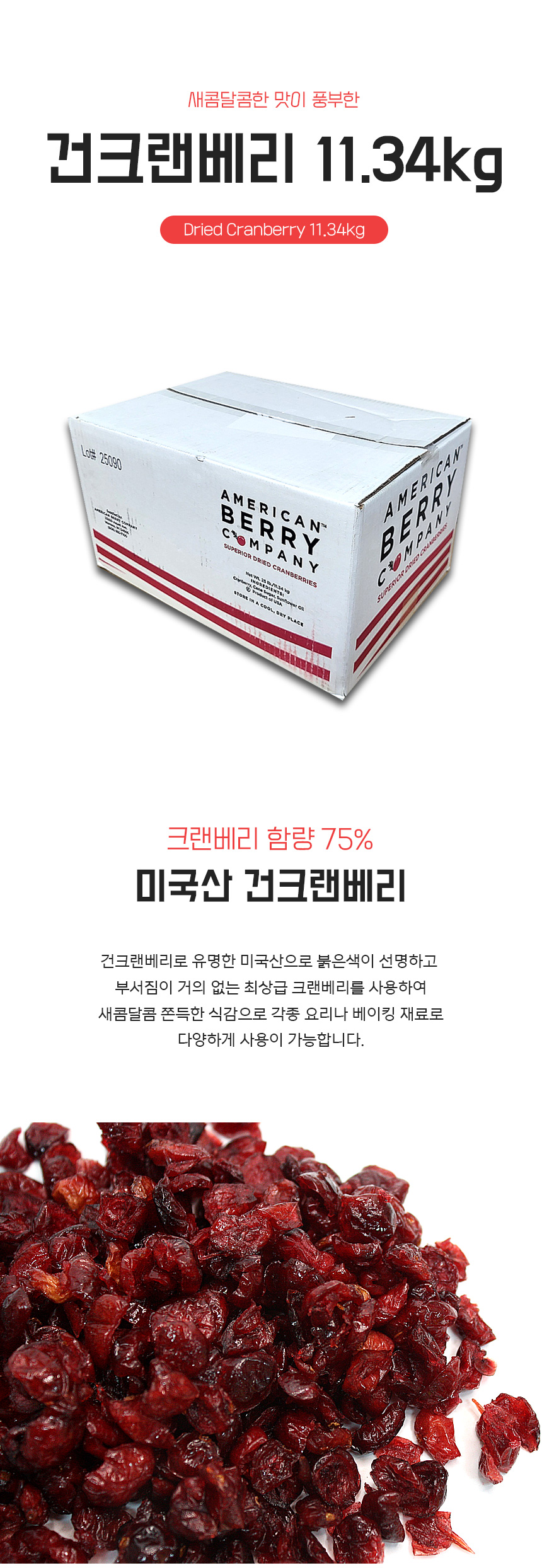 • 미국산 건크랜베리 11.34kg 아메리칸 건조 말린 크렌베리 75%함유 건과일