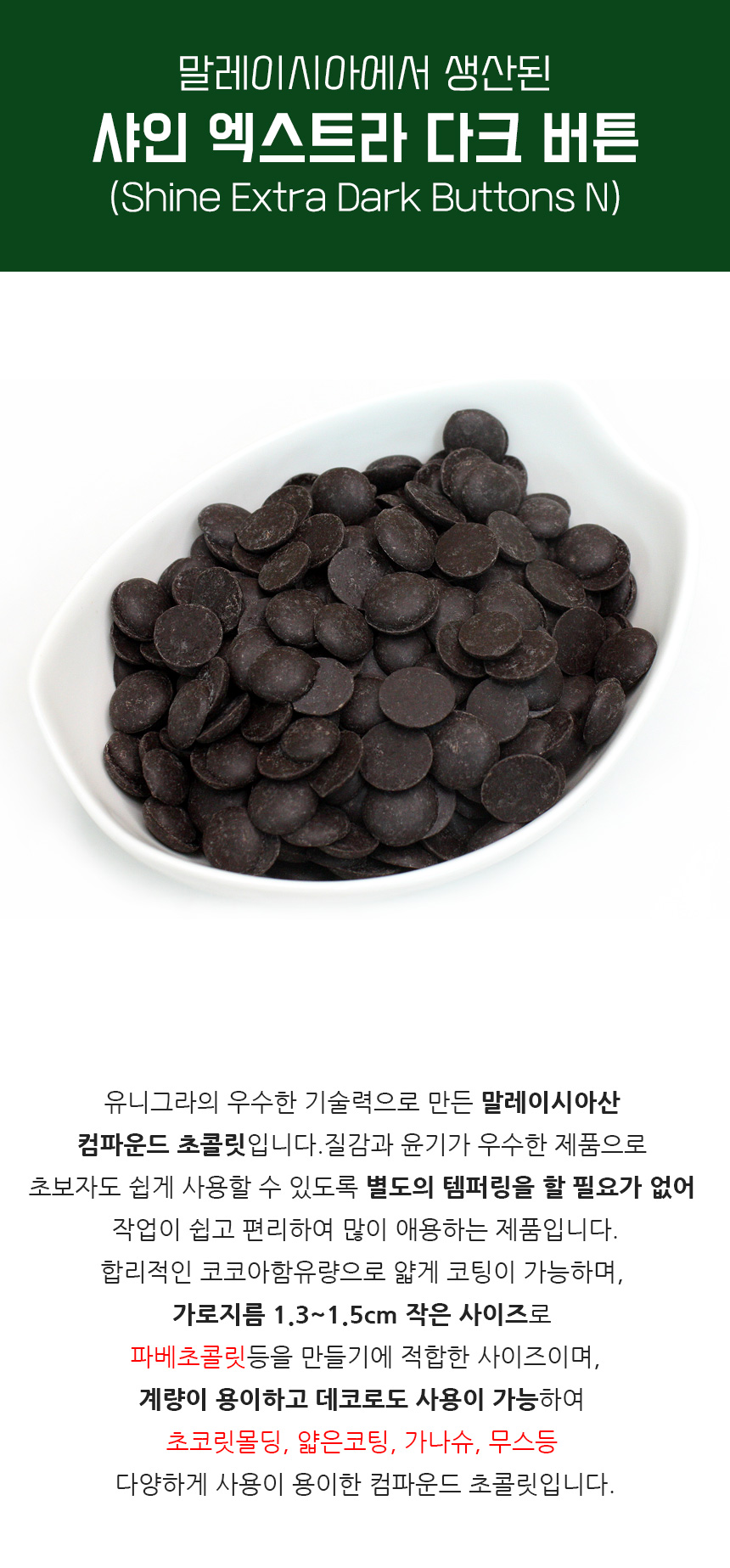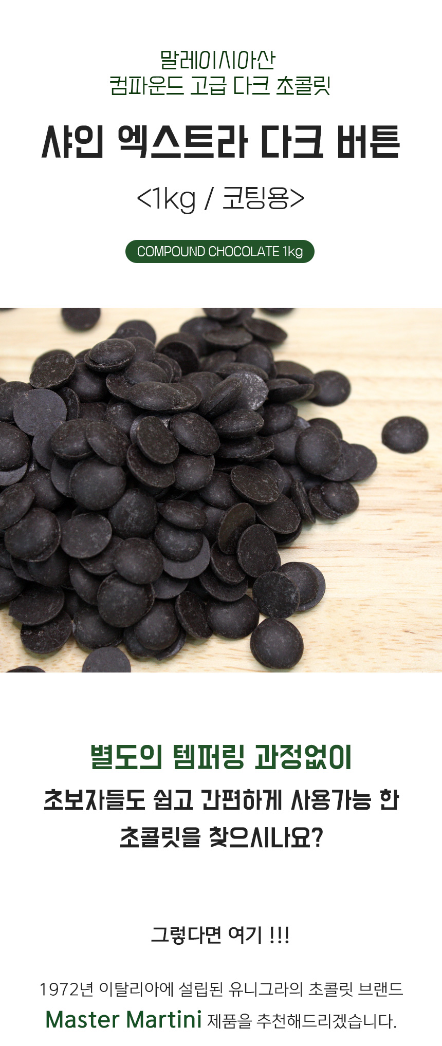 • 샤인 엑스트라 컴파운드 버튼 초콜릿 1kg 코팅 다크초콜렛 컴파운트