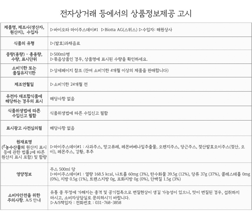 • 바이오타 마이 주스 데이 과일 음료수 500ml x 16병