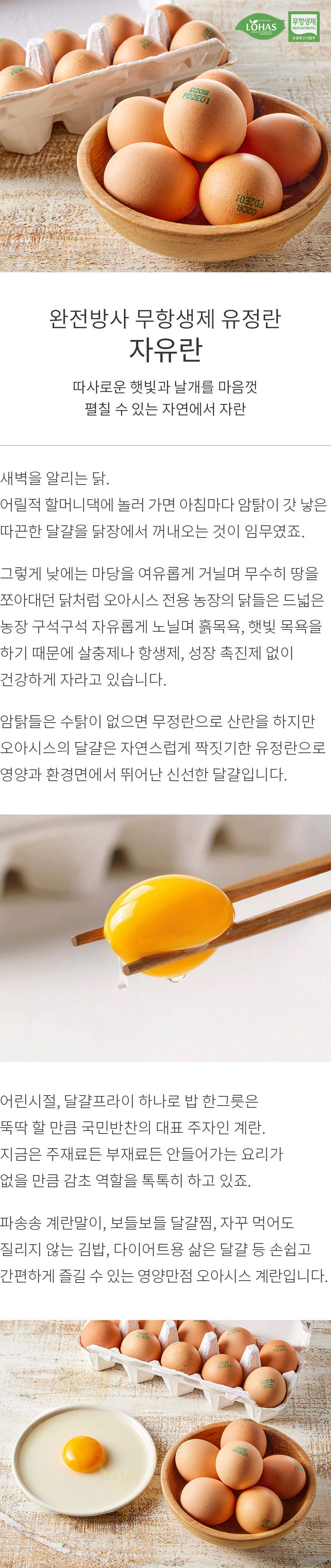 자연에서 노닐며 목초 먹고 자란 행복한 닭의 유정란