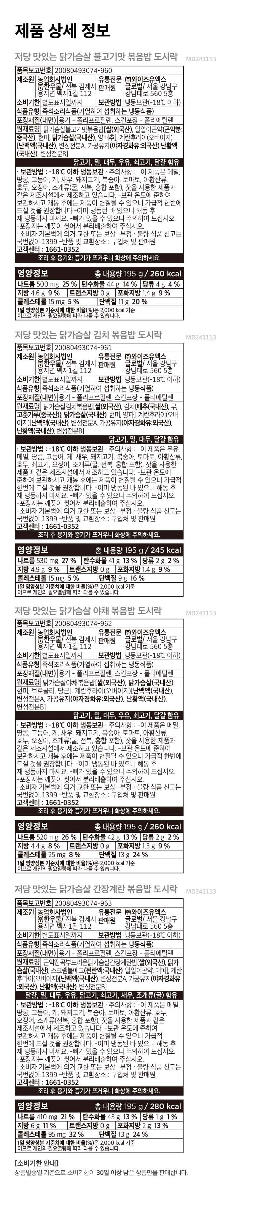 [저당] 맛있는 닭가슴살 볶음밥 도시락 4종 (195g×12팩)