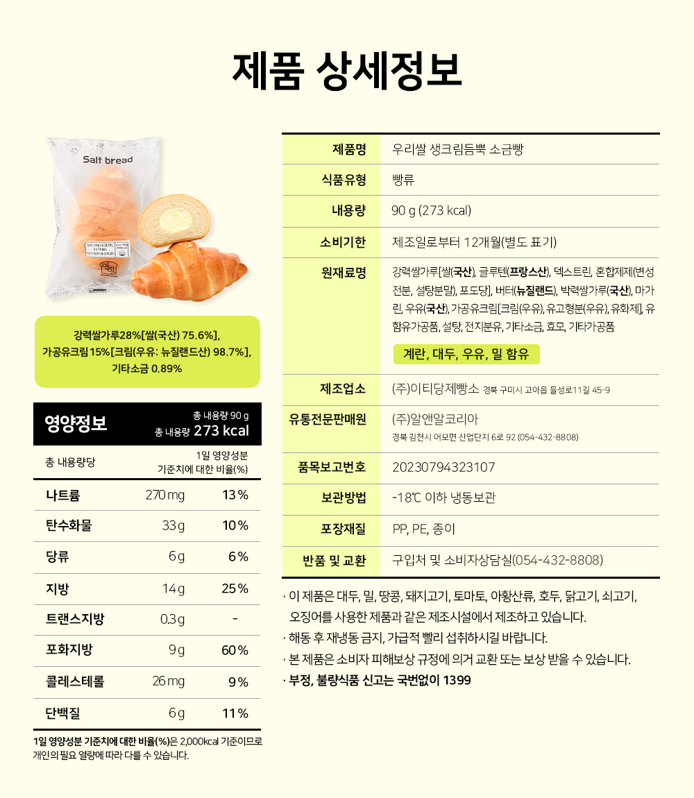 우리쌀과 동물성 생크림으로 만든 단짠 우유 풍미 가득한 소금빵