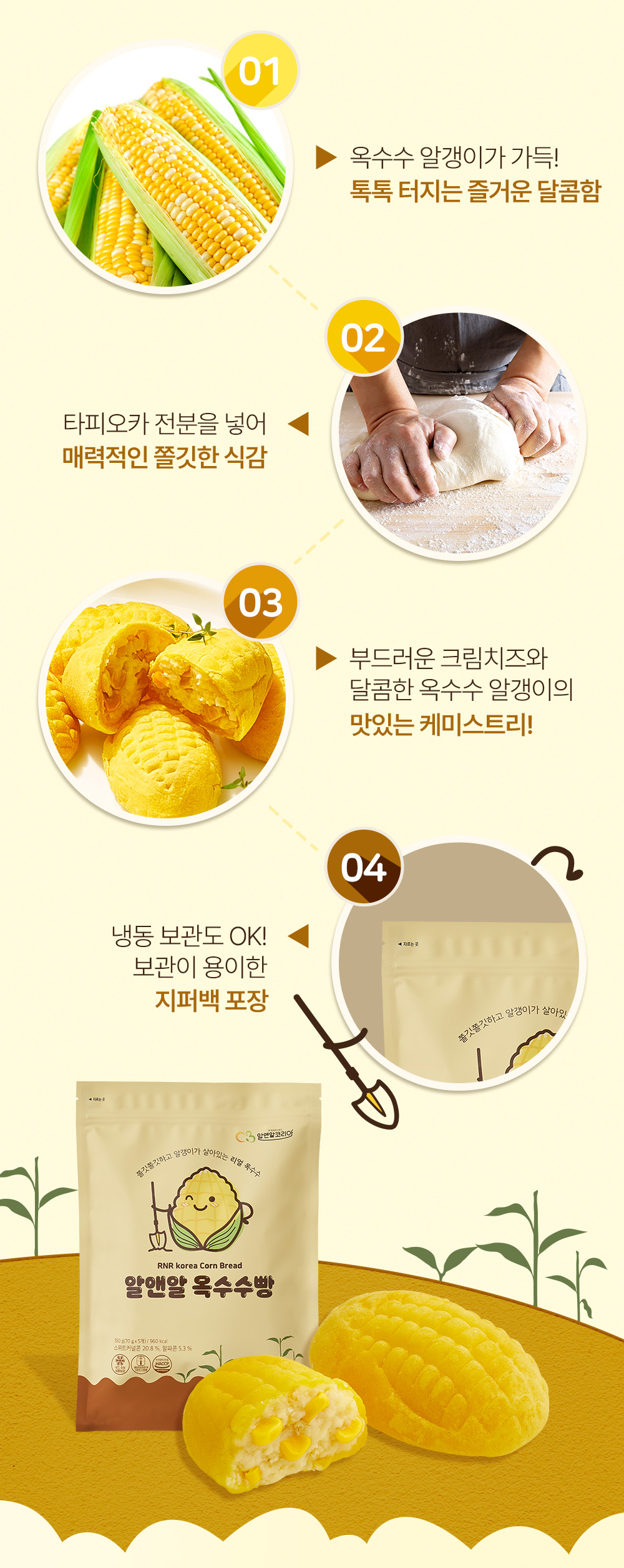 알앤알 구황작물빵(감자빵, 고구마빵, 옥수수빵, 통밤빵, 땅콩빵)