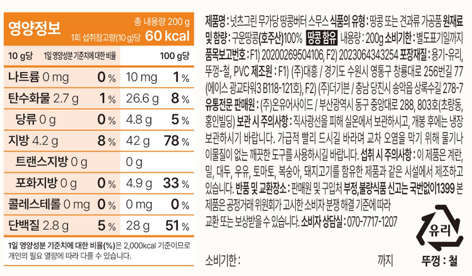 [리뉴얼 특가] 넛츠그린 무가당 땅콩버터 스무스 (200g)