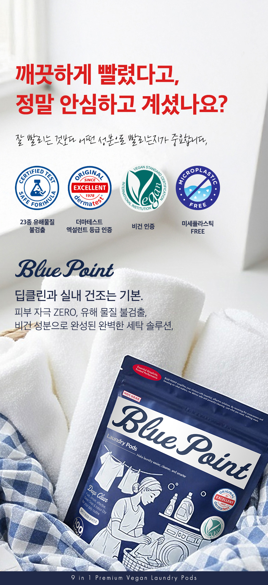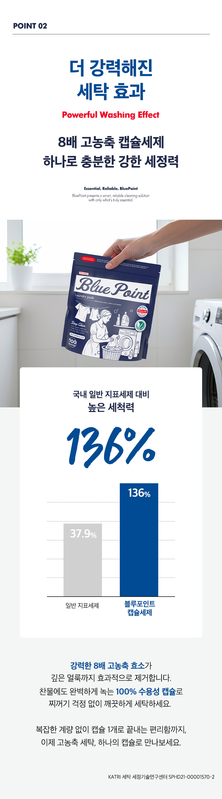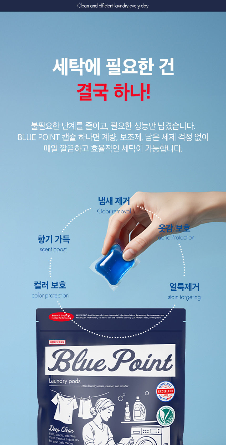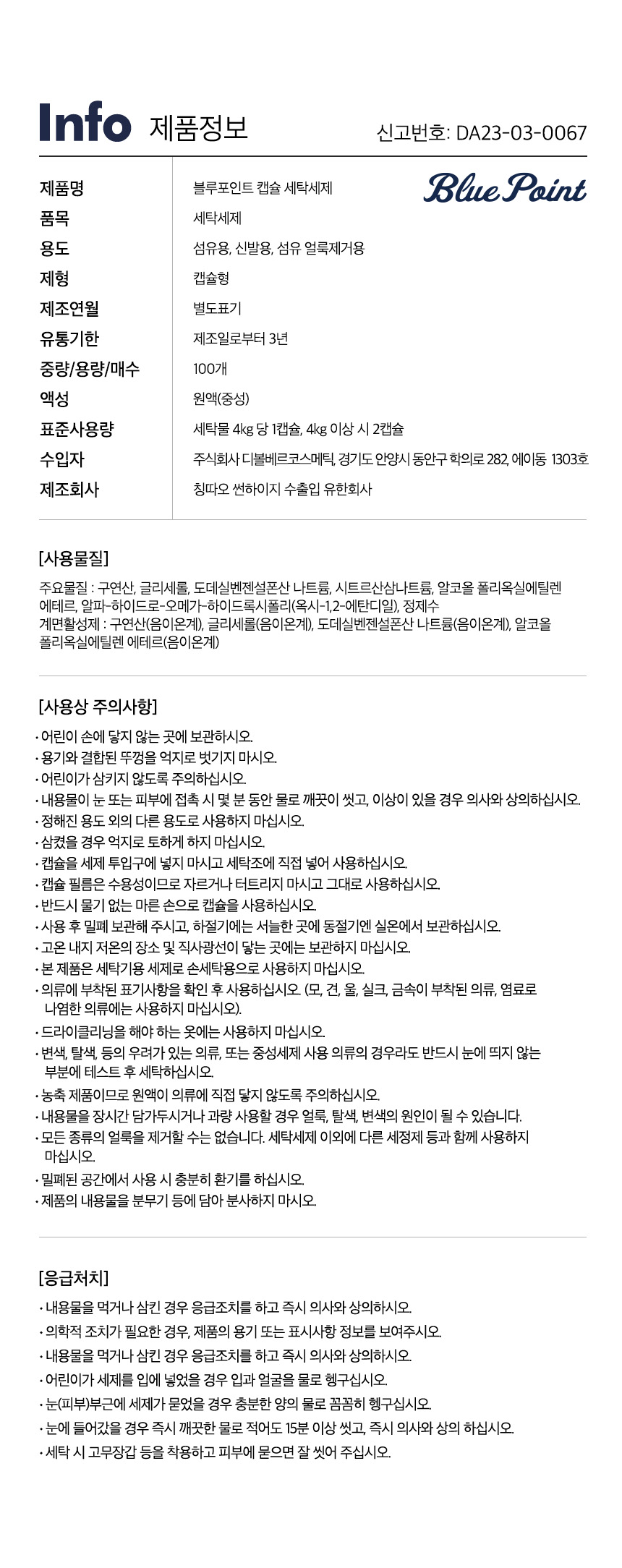 [더마테스트인증/비건]블루포인트_캡슐세탁세제 100개 (일반/드럼겸용/실내건조)