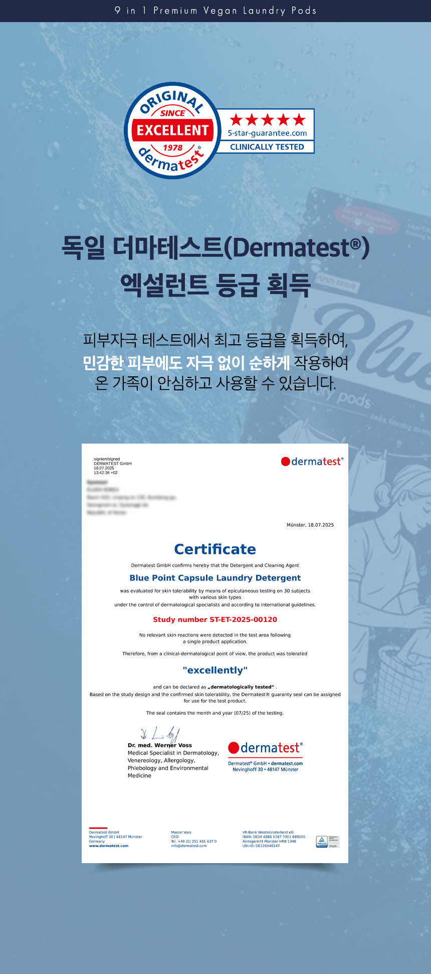 [독일 더마 인증] 세계적인 피부과학 연구소 더마테스트 인증으로 입증된 피부 저자극의 차원이 다른 안심 [100% 비건 포뮬러] 동물성 원료 배제와 환경까지 생각한 비건 인증으로 가치 소비 트렌드 완벽 충족 [딥 클린 세척력] 초고농축 성분이 섬유 깊숙한 생활 얼룩과 미세먼지까지 빈틈없이 제거하는 강력함