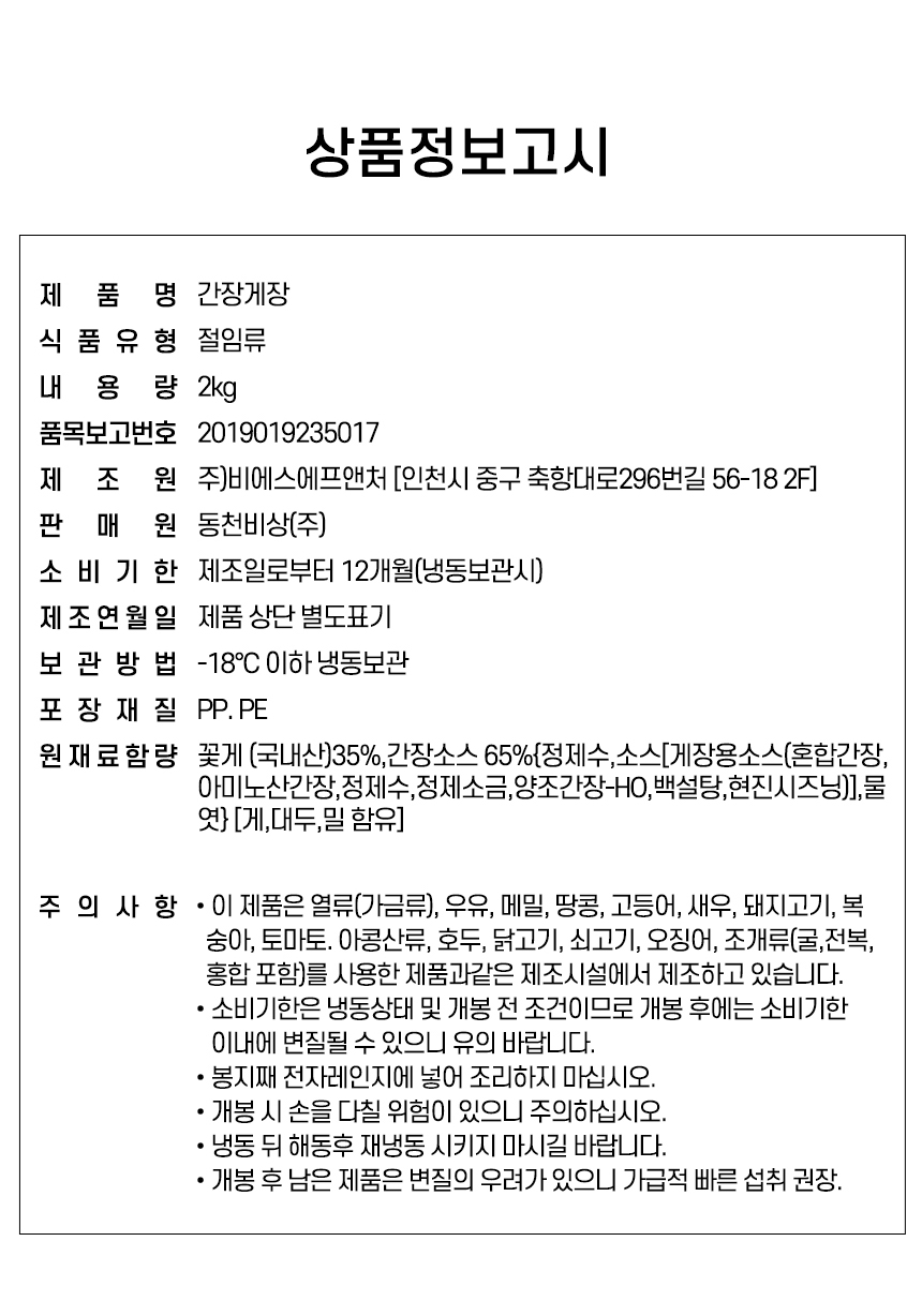 소비기한 : 제조일로부터 12개월(냉동보관시)