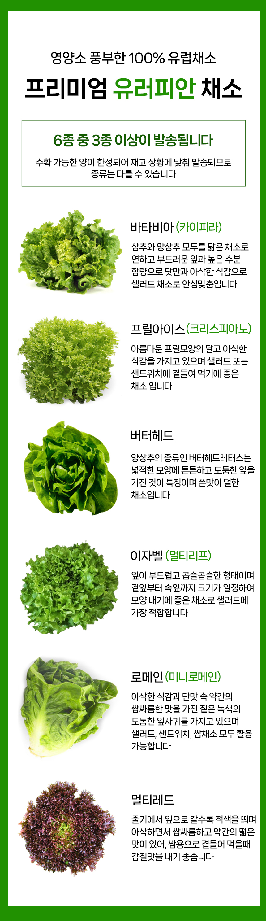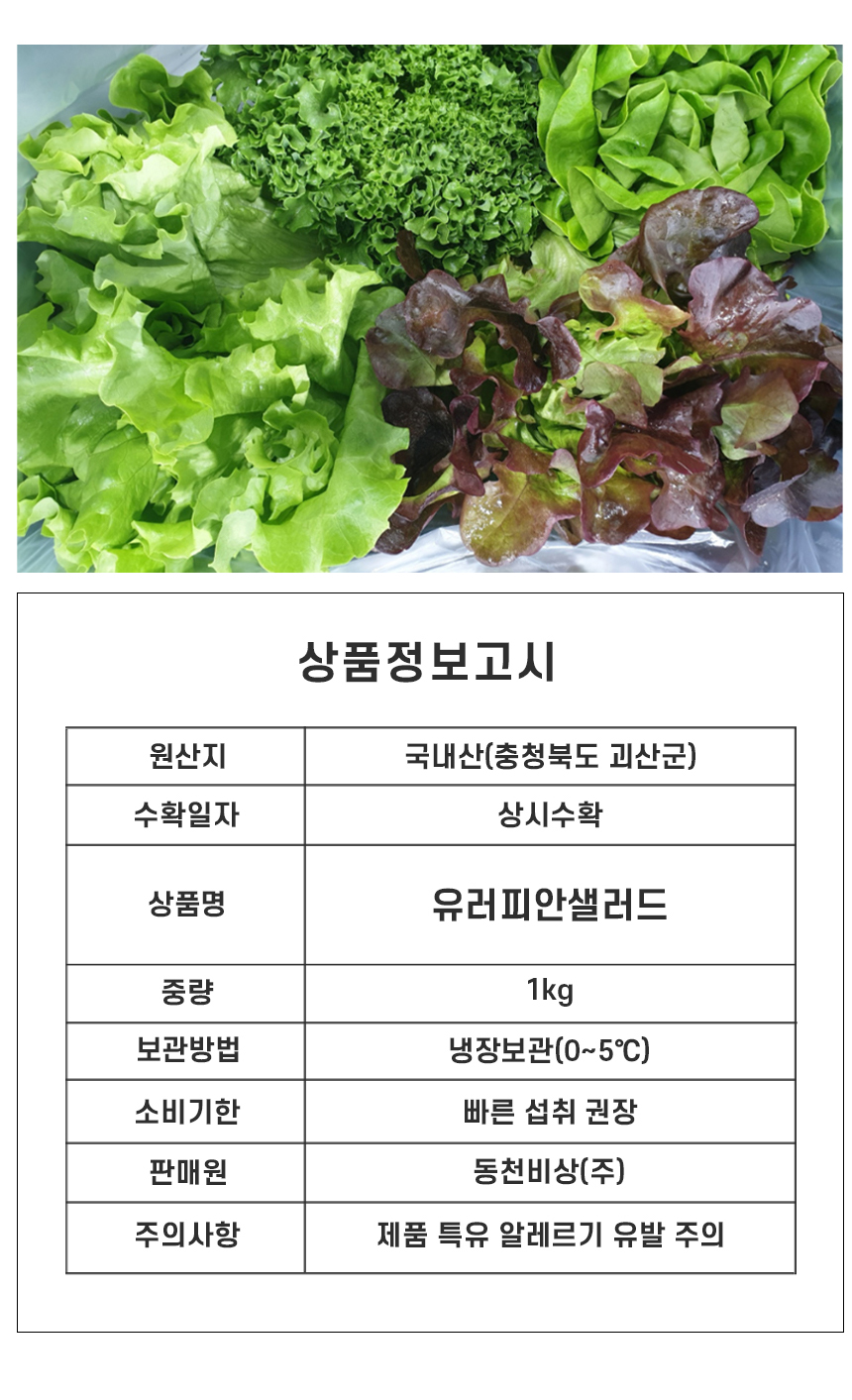 친환경 유러피안 샐러드 유럽샐러드 채소 신선채소 1kg 2kg 4kg