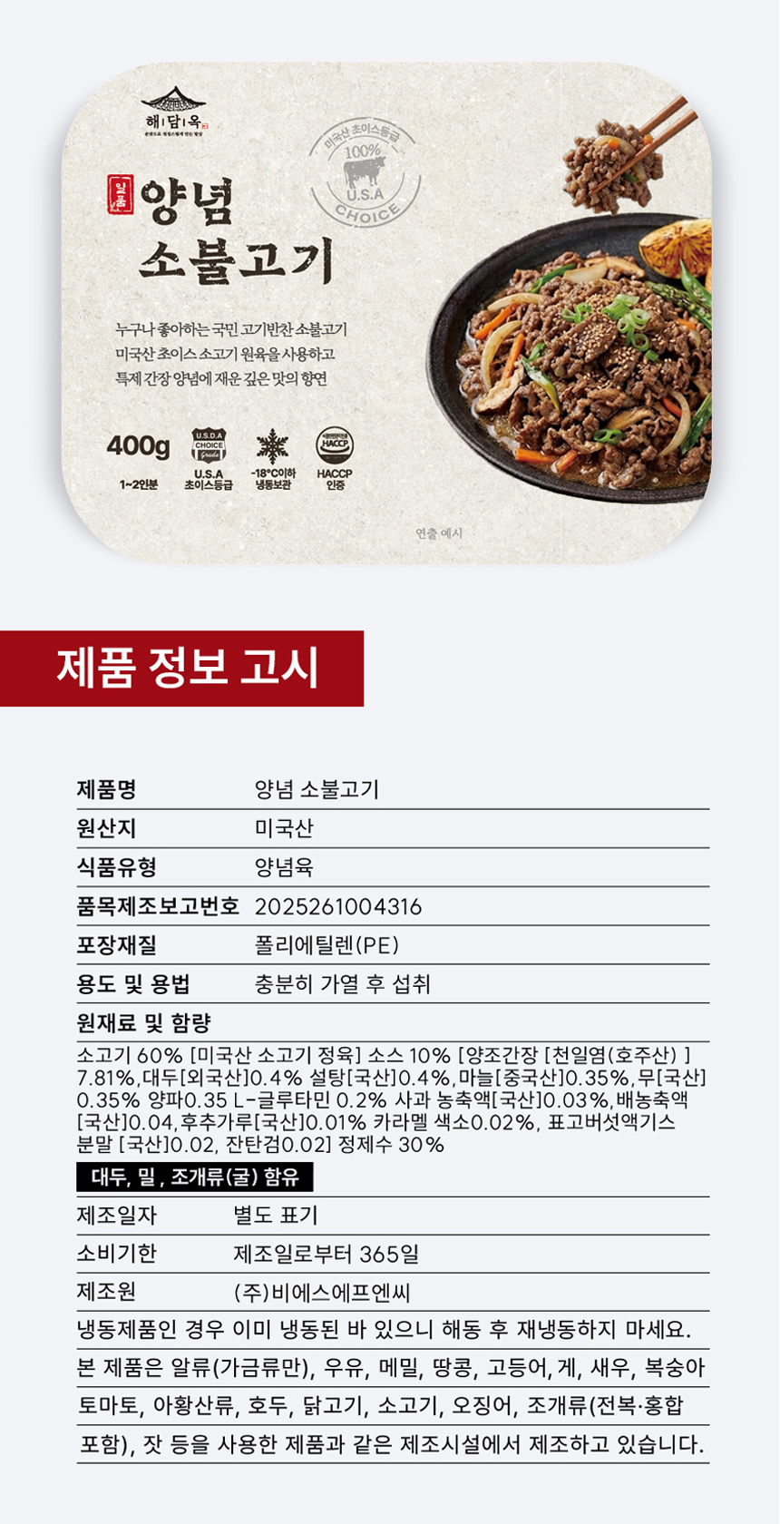 양념 소불고기 미국산 초이스등급 400g