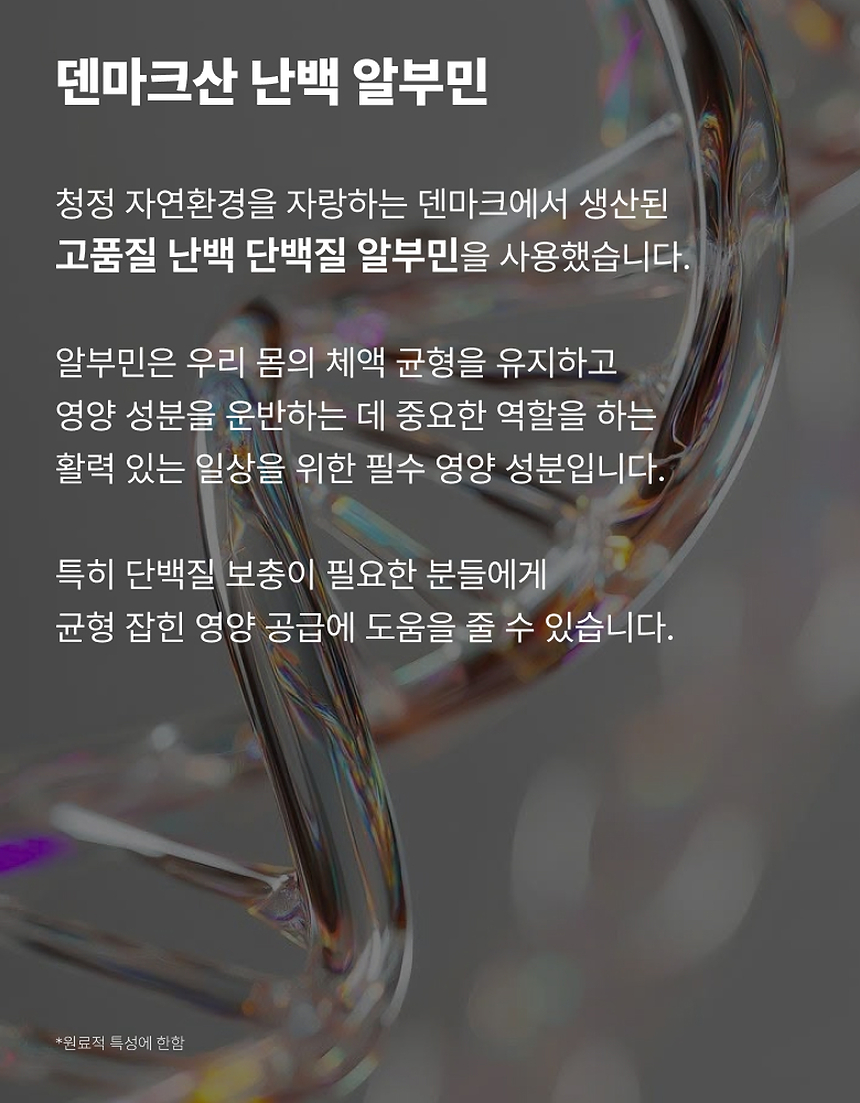 80년 전통 제약사의 엄격한 기준을 통과하여 연구개발된 알부민!