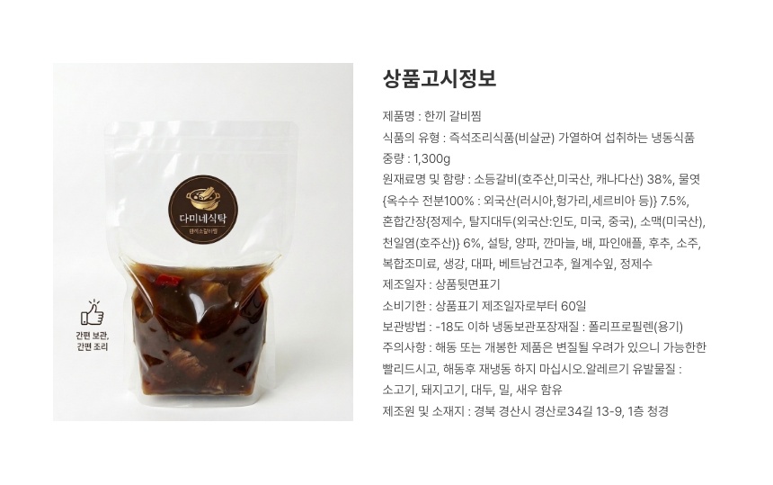 다미네식탁 국물소갈비찜으로 한끼 해결하세요!