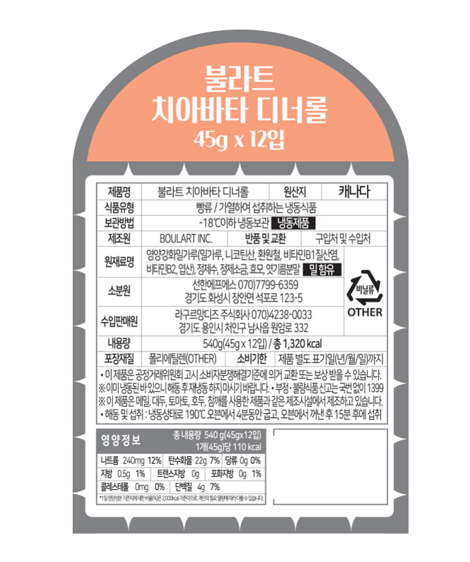 불라트 치아바타 디너롤 540g(45gX12)