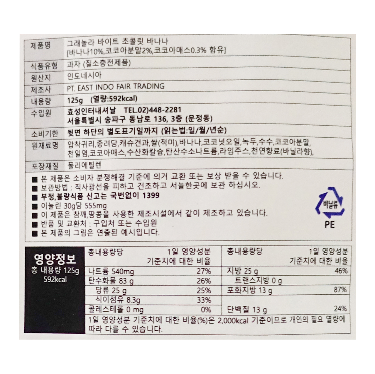 그래놀라 바이트 초콜릿 바나나 (125g)