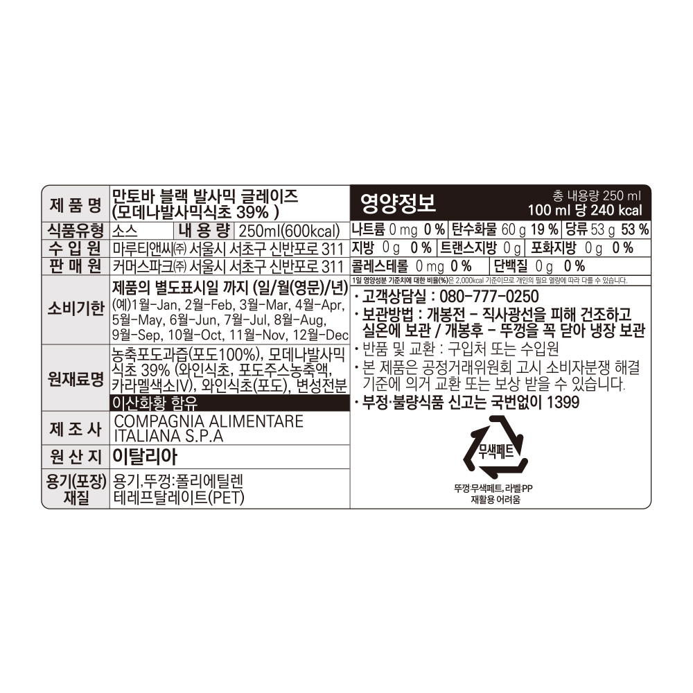 [올리타리아] 발사믹식초 3그레이프 250ml
