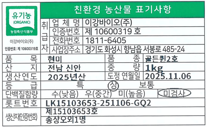 [25년산] 유기농 월향미 골든퀸 2호 현미 (1kg) 수량빼기 수량추가 6,900 원 총 수량 1 개 6,900 원 구매옵션 닫기 찜하기 추가 찜하기 삭제 구매후기 1,918 상품상세 정기구독 장바구니 정기구독 장바구니 구매하기 정기배송 장바구니