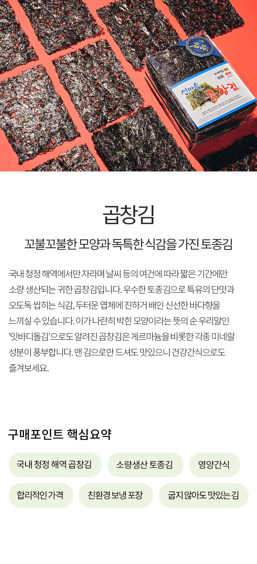 명품 섬마을 곱창김(50장) 수량빼기 수량추가 24,900 원 총 수량 1 개 24,900 원 구매옵션 닫기 찜하기 추가 찜하기 삭제 구매후기 1,321 상품상세 정기구독 장바구니 정기구독 장바구니 구매하기 정기배송 장바구니