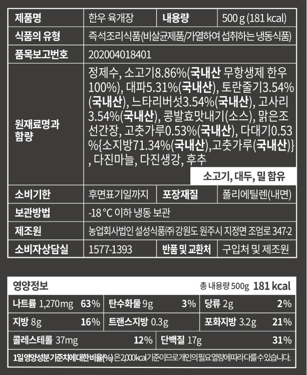 한우 육개장 (500g) 수량빼기 수량추가 10,800 원 총 수량 1 개 10,800 원 구매옵션 닫기 찜하기 추가 찜하기 삭제 구매후기 2,754 상품상세 정기구독 장바구니 정기구독 장바구니 구매하기 정기배송 장바구니