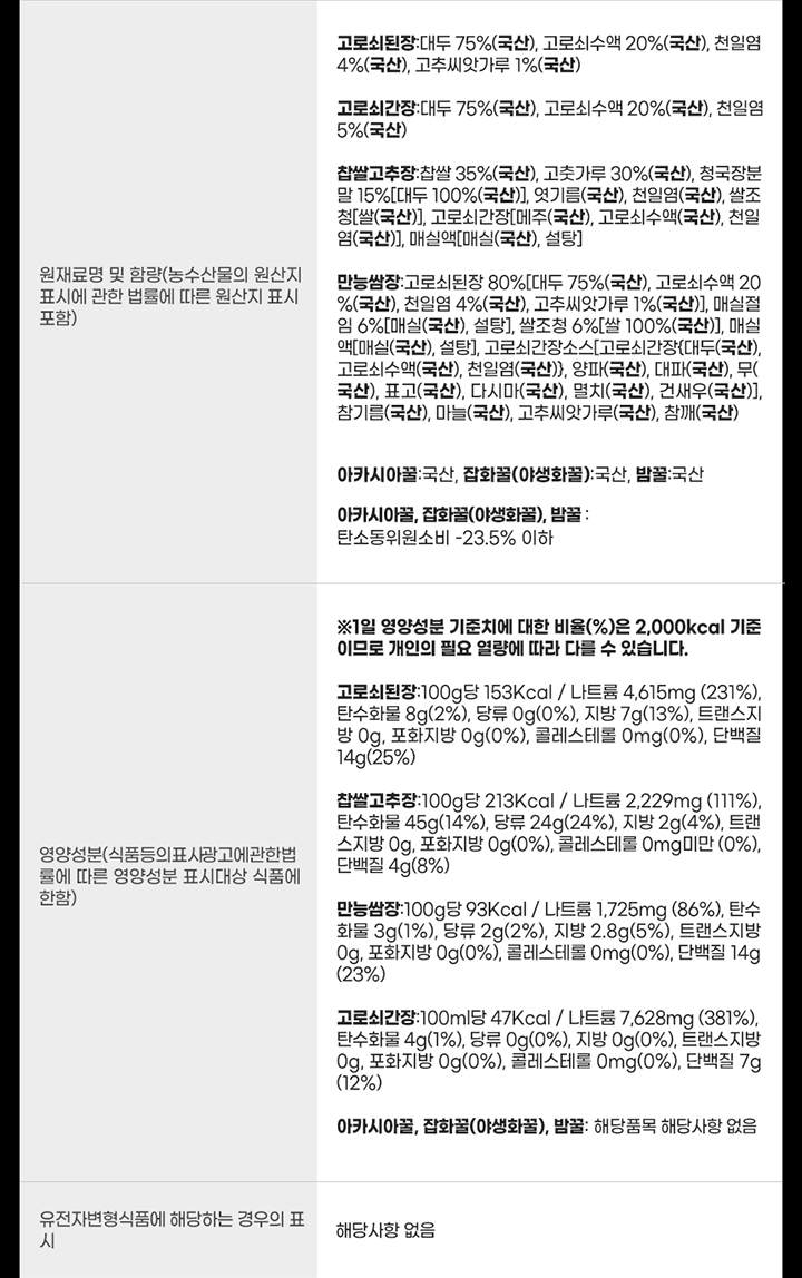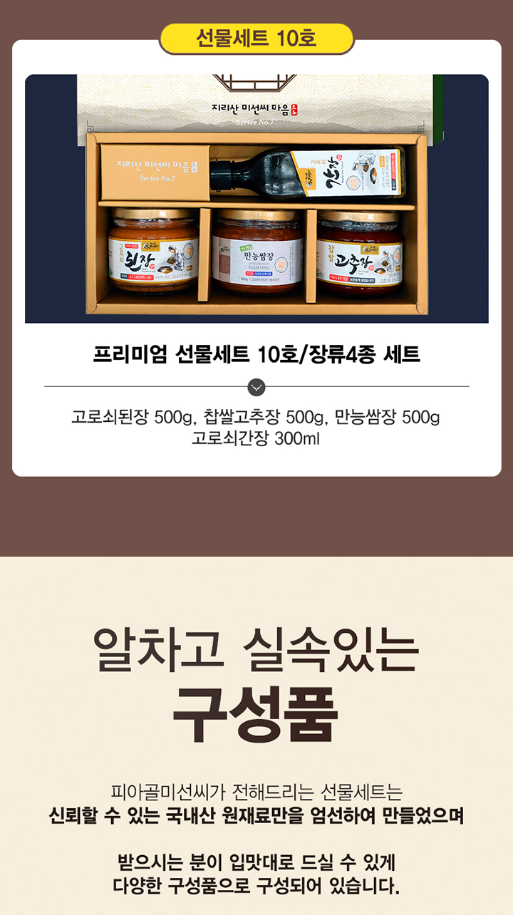 청정 피아골에서 온 국산 100%! 원재료만을 사용한 장류 선물세트