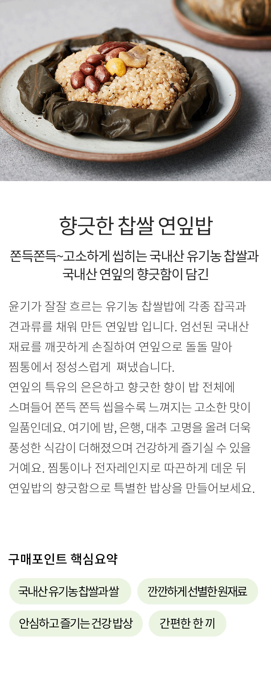 쫀득쫀득~ 고소하게 씹히는 찹쌀밥과 연잎의 향긋함이 담긴