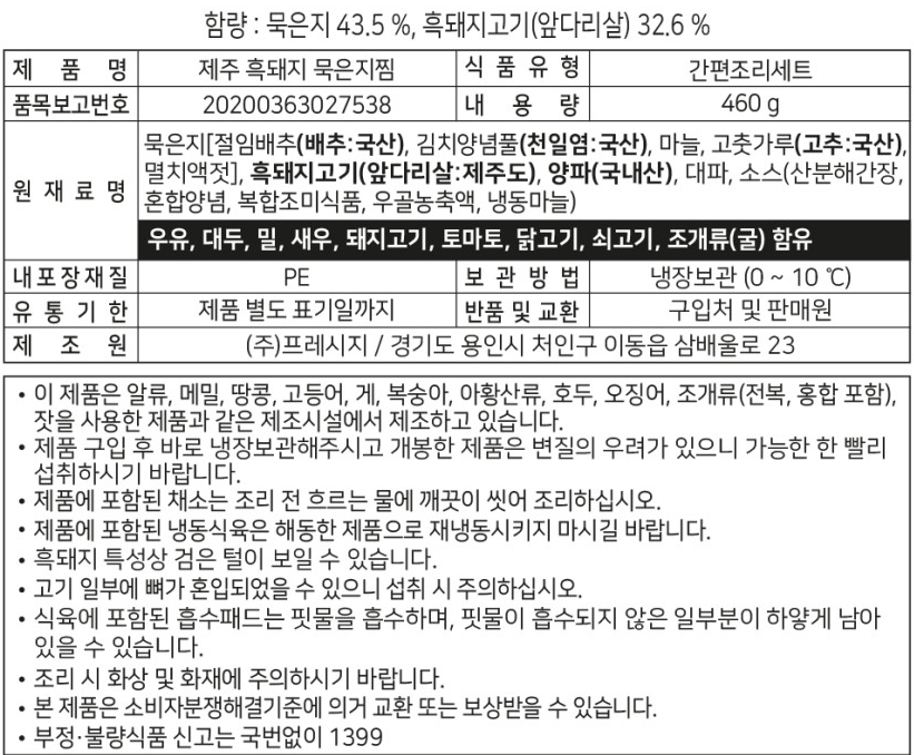 [한정특가]흑돈가제주 흑돼지 묵은지찜(2인분,냉장460g)