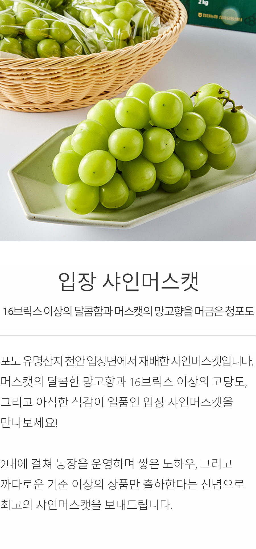 입장 샤인머스캣(2-4수/2kg) 수량빼기 수량추가 14,900 원 총 수량 1 개 14,900 원 구매옵션 닫기 선물하기 구매후기 1,770 상품상세 정기구독 장바구니 정기구독 장바구니 구매하기 정기배송 장바구니
