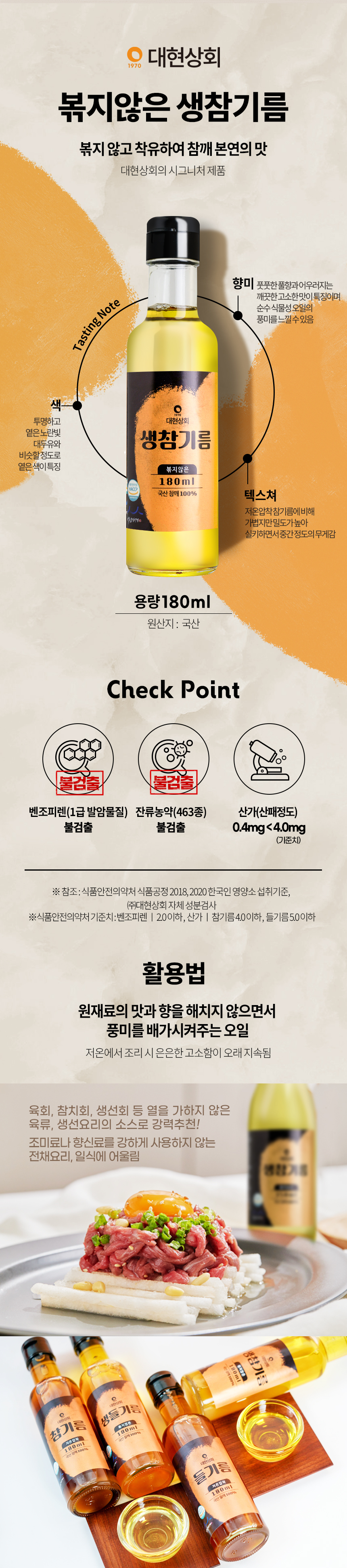 • 대현상회 저온압착 국산 참기름 들기름 생들기름 180ml/350ml