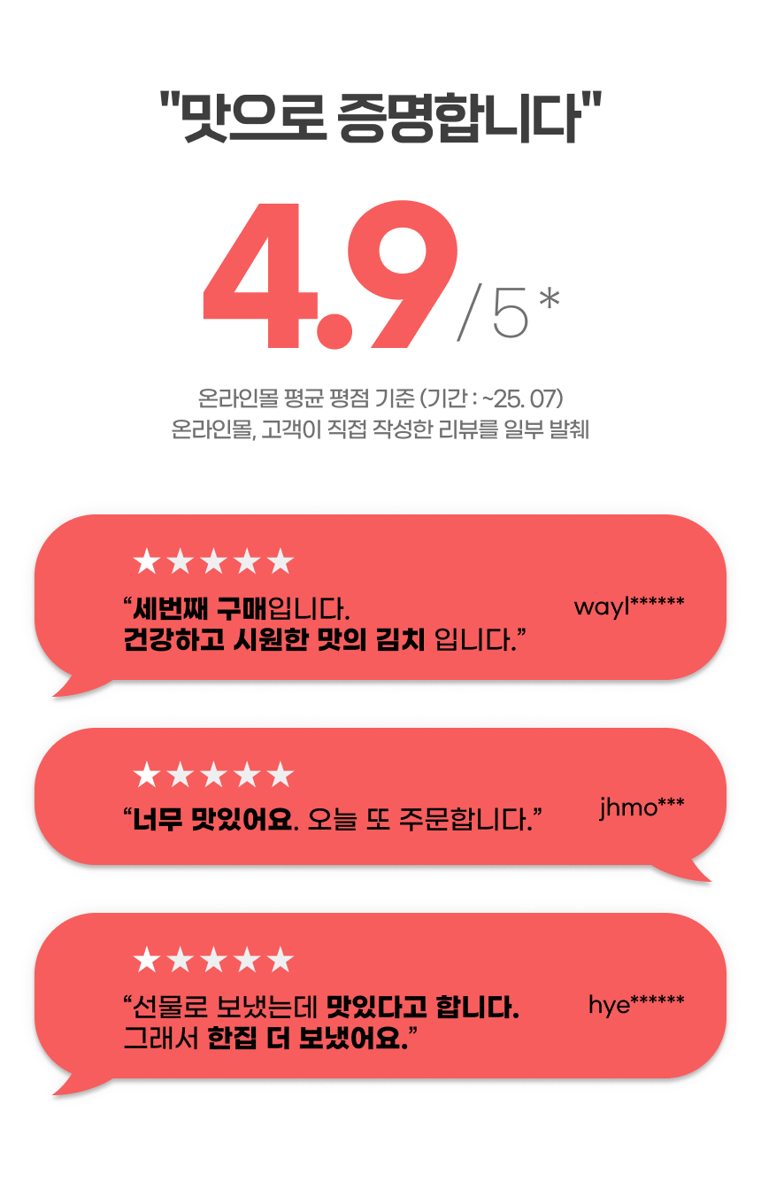 산지직송 배추와 100% 국내산 고춧가루로 만들어요