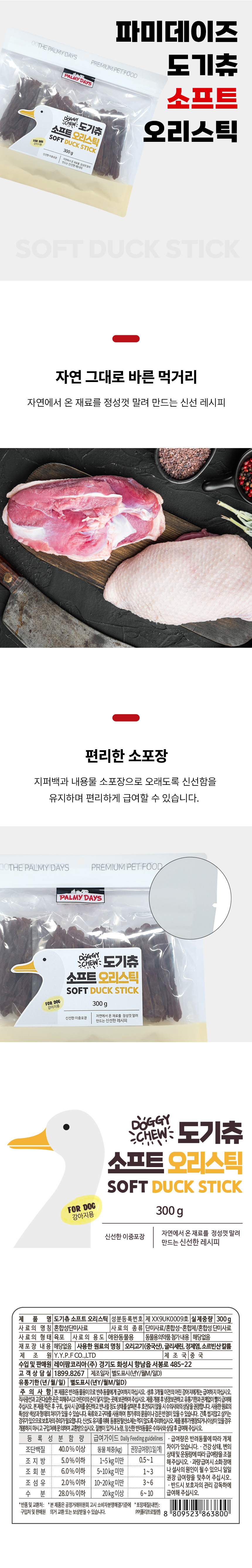 100% 식용 오리 가슴살로 만든 무첨가 소프트스틱