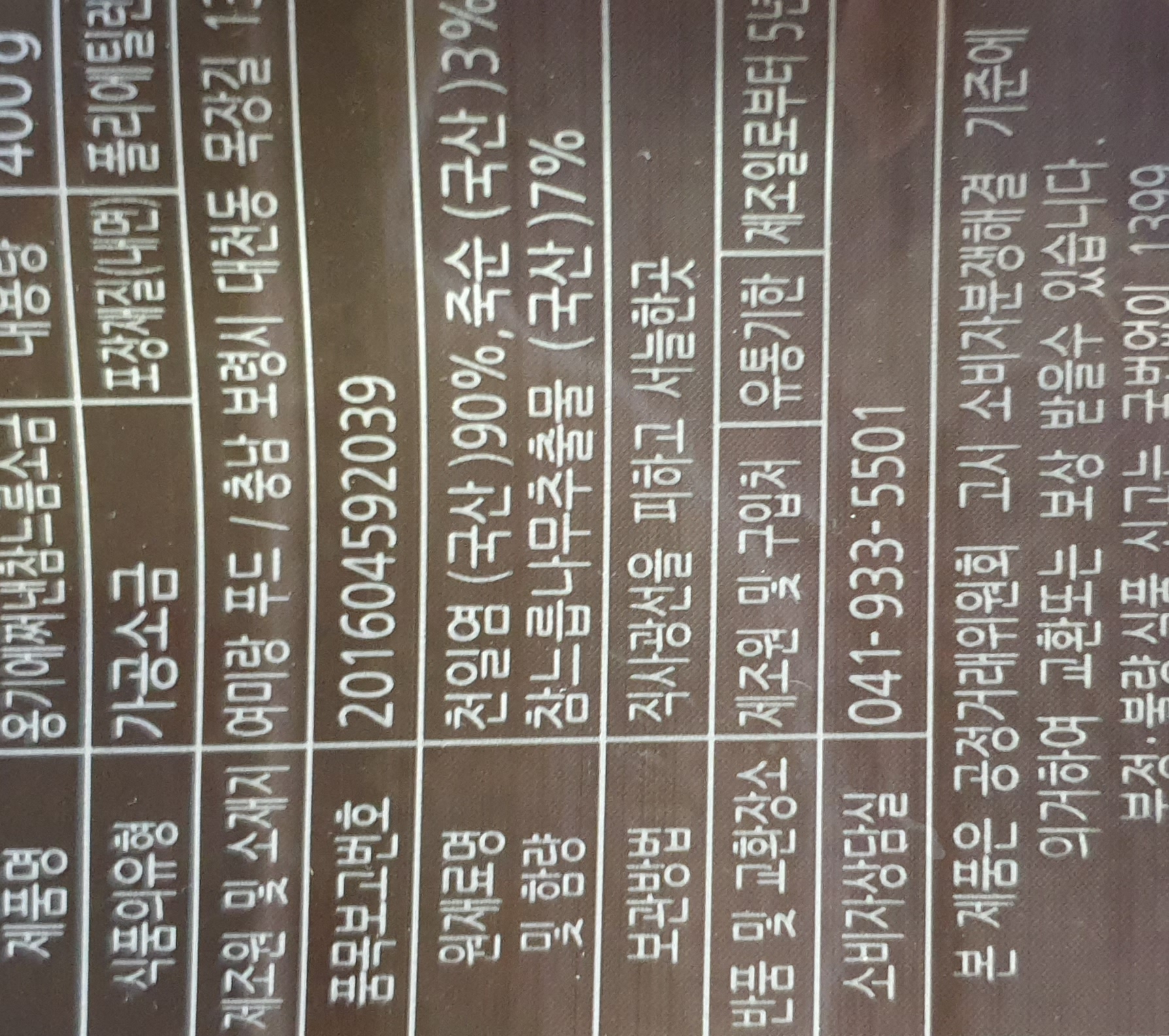 원재료 및 함량