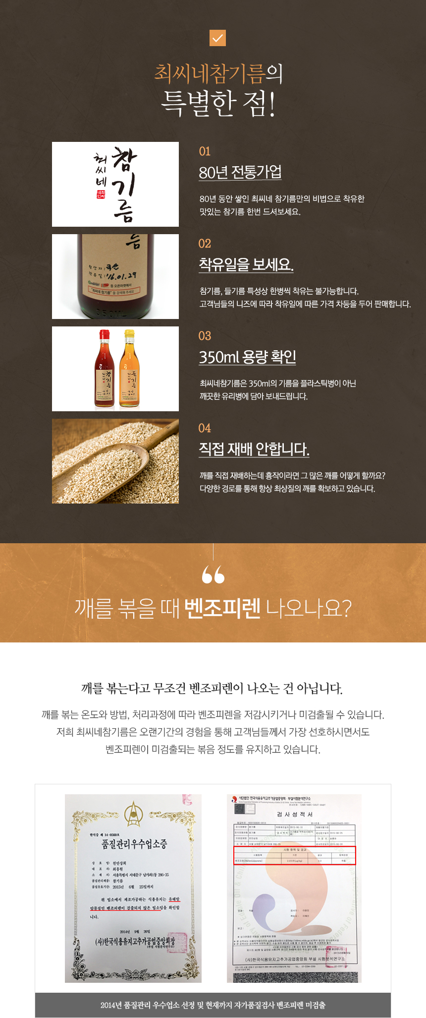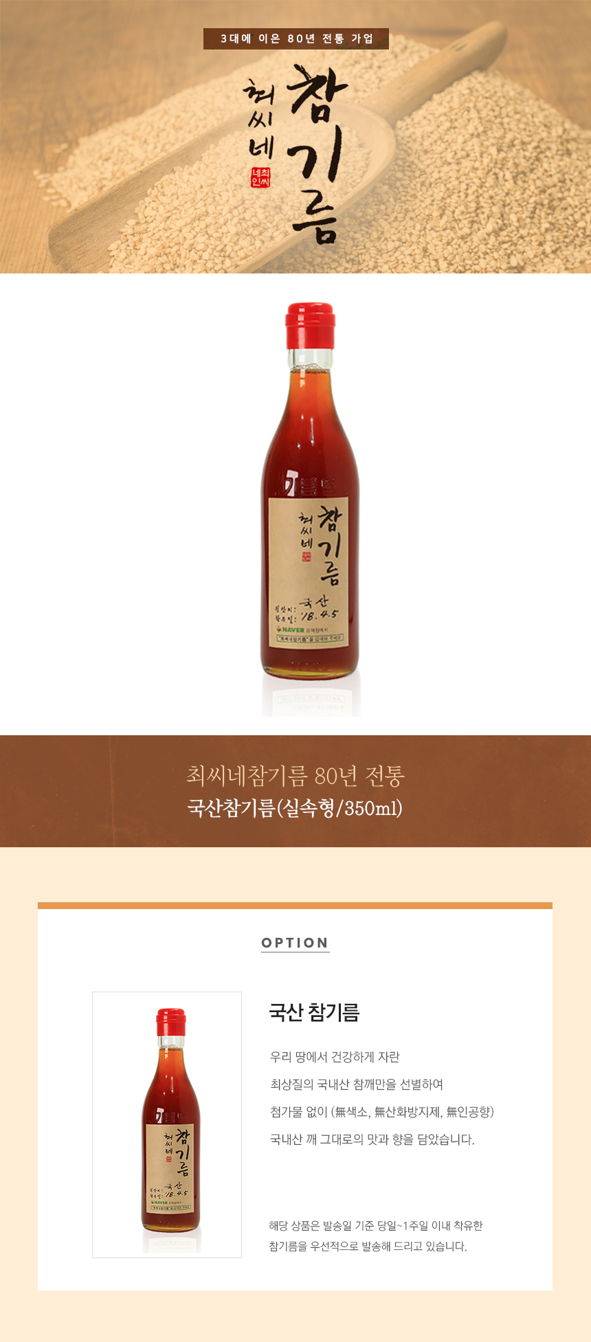 80년 전통의 비법으로 정성을 다해 착유한 고소한 참기름