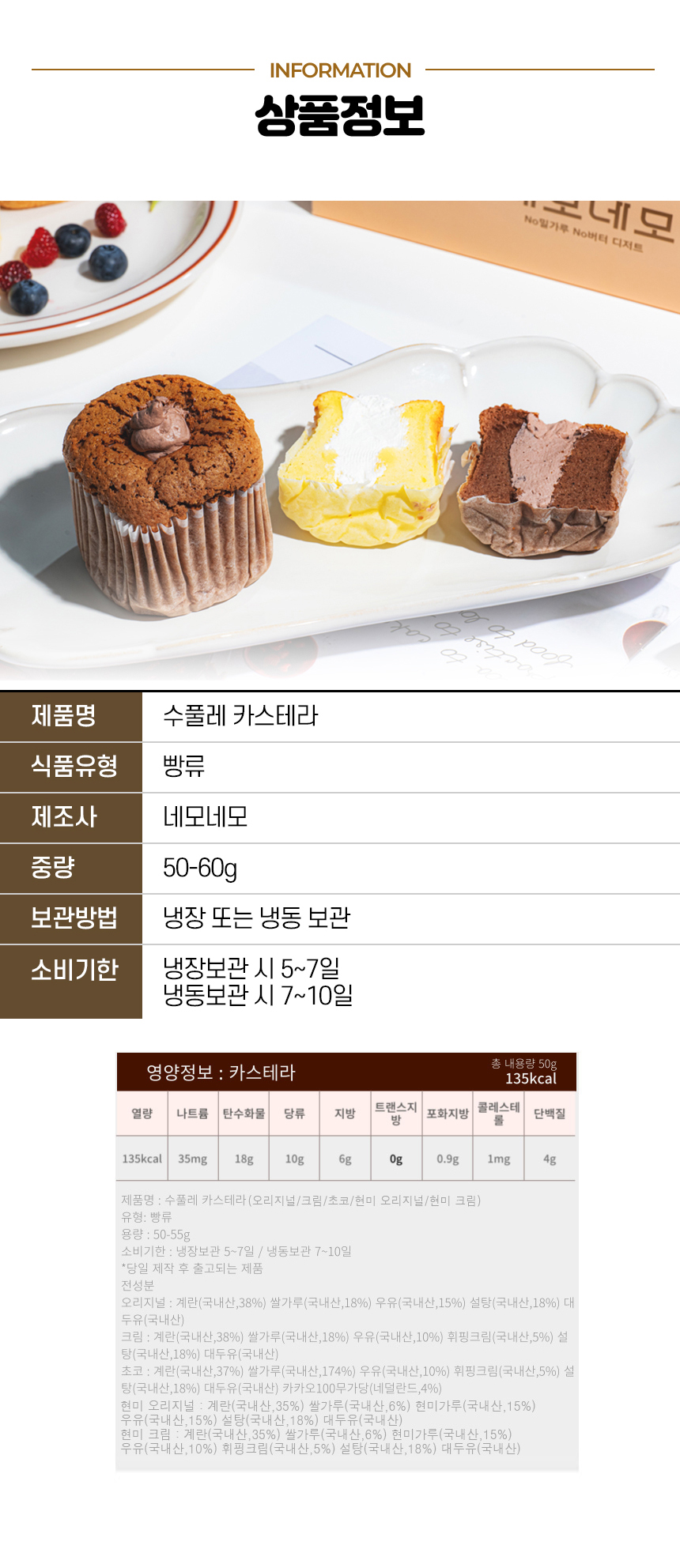 "노밀가루, 노버터, 노색소, 노식품보존제" 퐁실퐁실 촉촉한 수풀레 카스테라 3종 입니다.