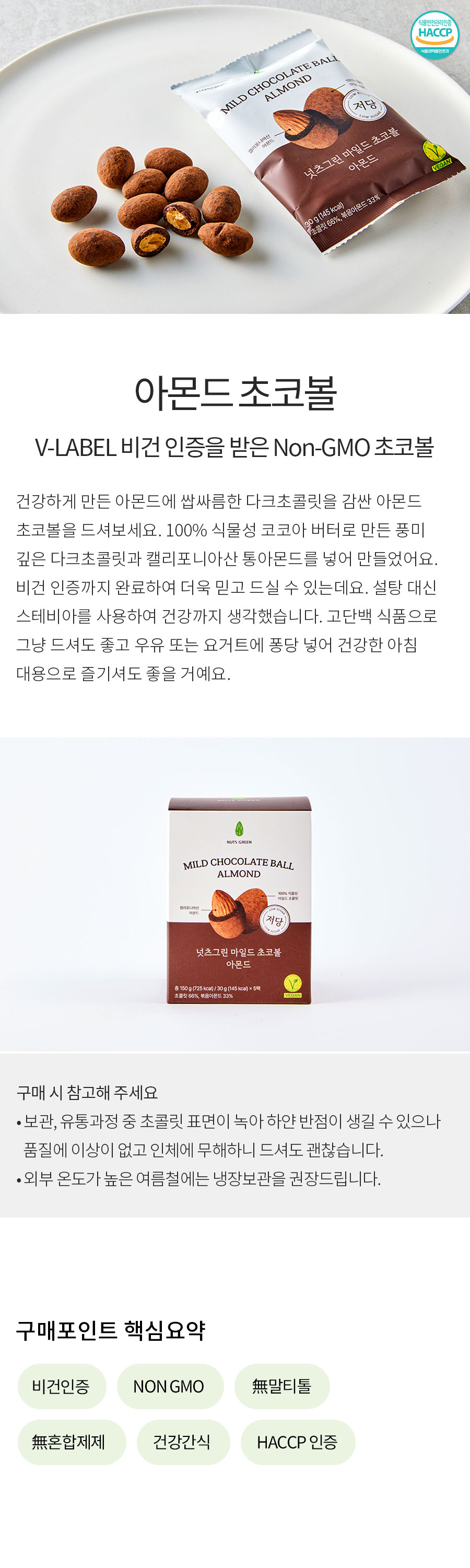[리뉴얼 특가] 넛츠그린 아몬드 초코볼 (30g x 5봉지)
