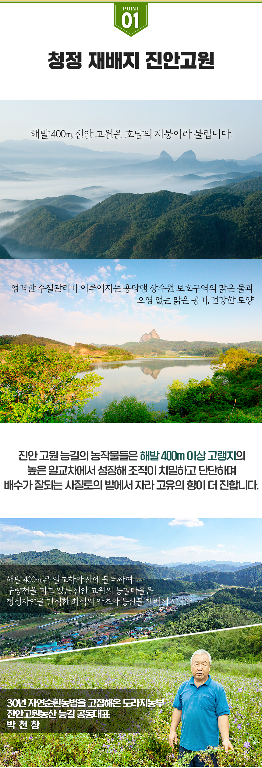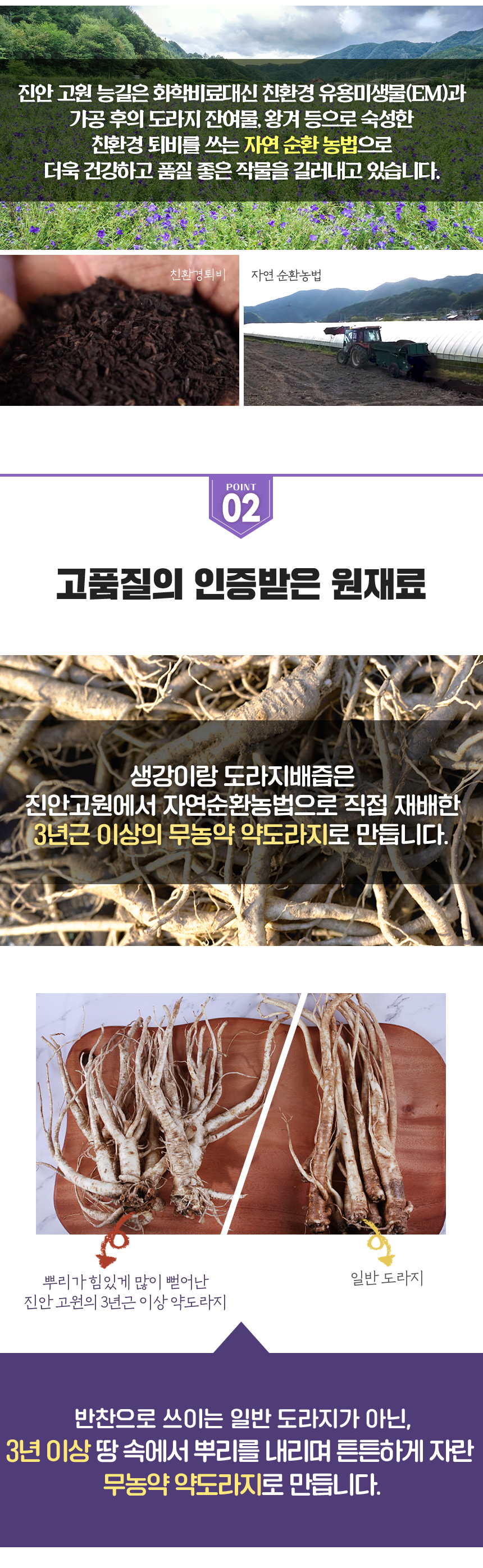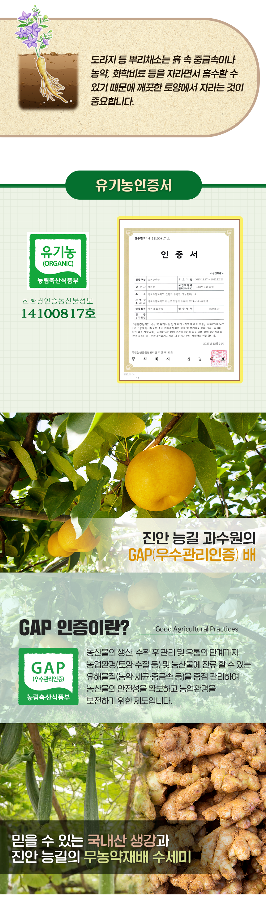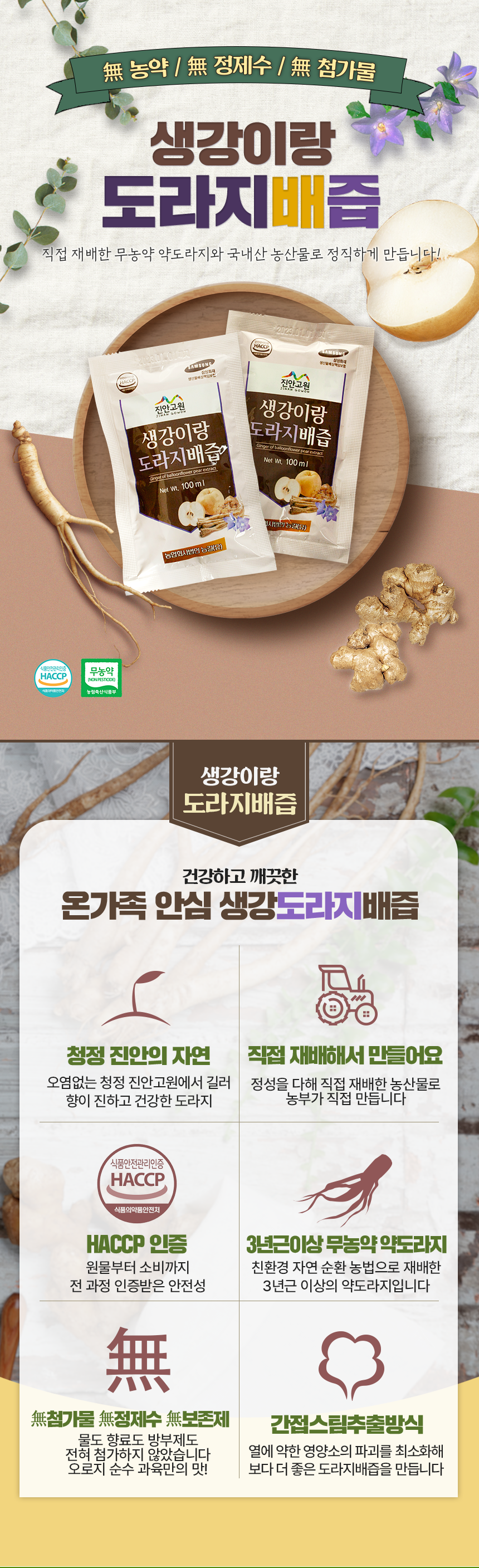 고원의 청정지역 진안 능길에서 무농약으로 직접 재배한 3년근 약도라지로 만든 친환경농산물과 HACCP 인증 제품