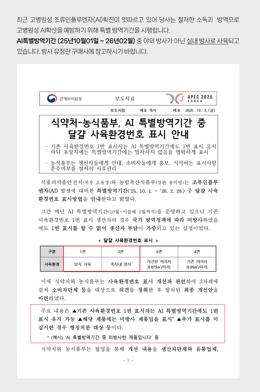 • 난각번호 1번란 동물복지 방사 유정란 20구 계란 생란