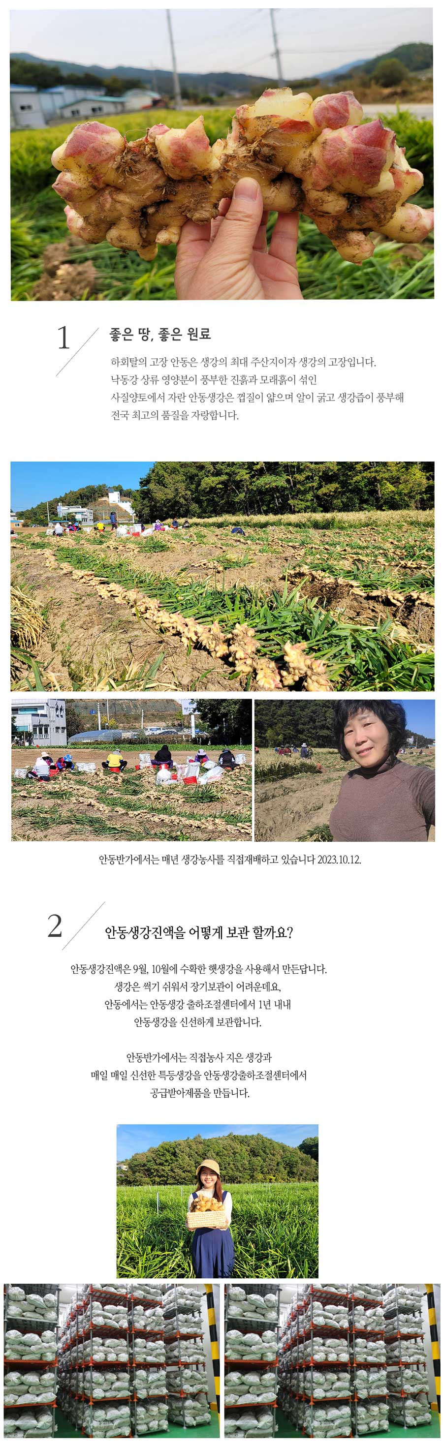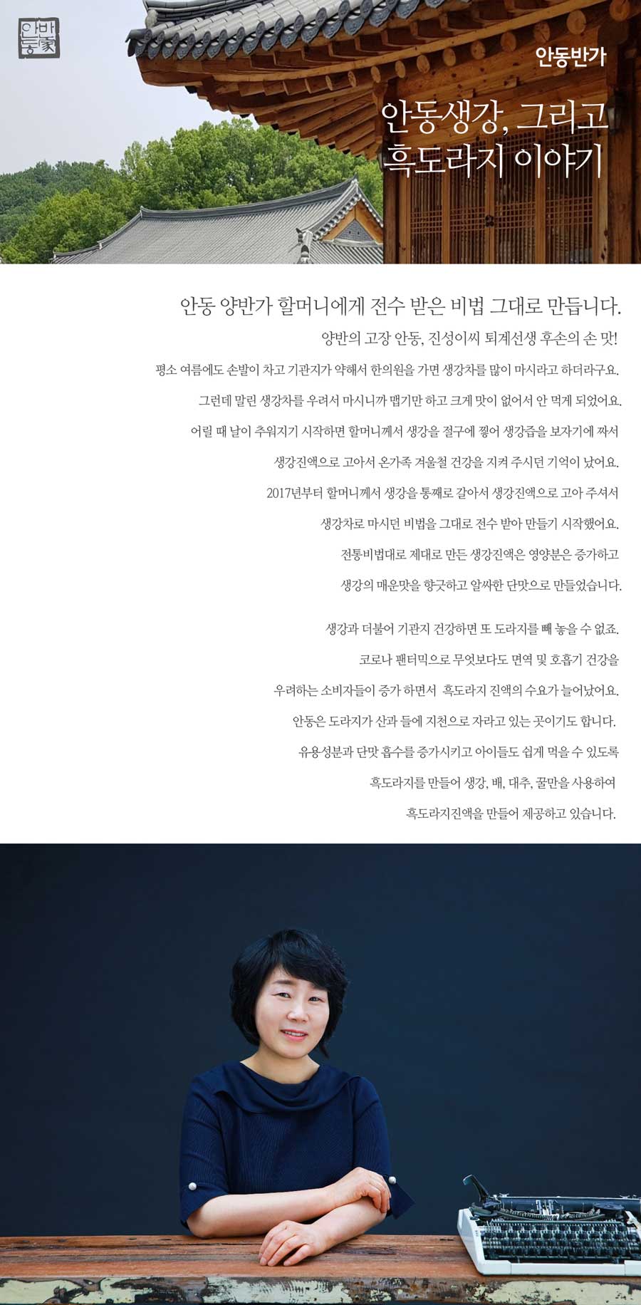 100% 안동생강 착즙 물한방울 넣지않고 가열농축한 안동생강진액 2종(320g×2)