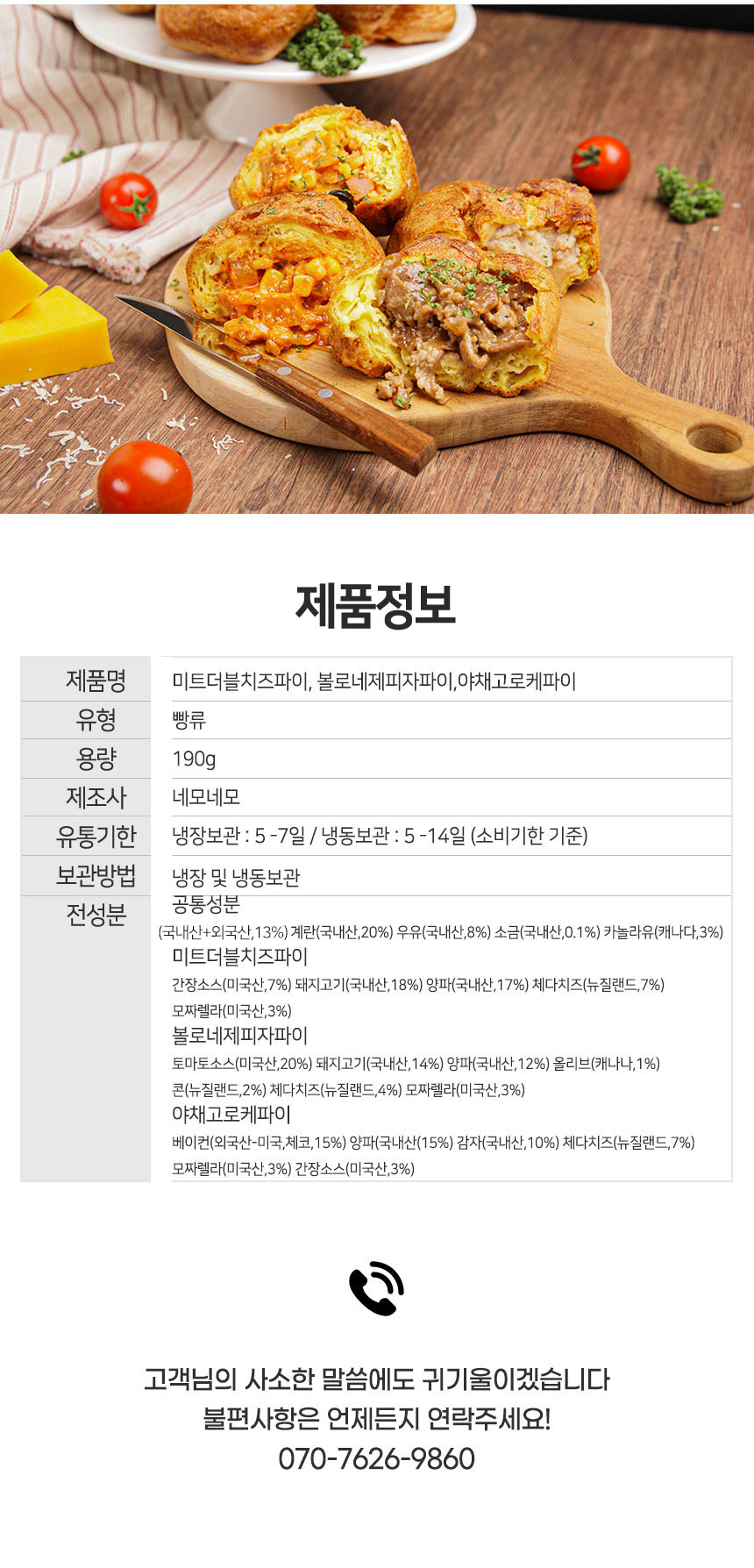노밀가루 글루텐프리 (미트더블치즈파이, 볼로네제피자파이, 야채고로케파이)