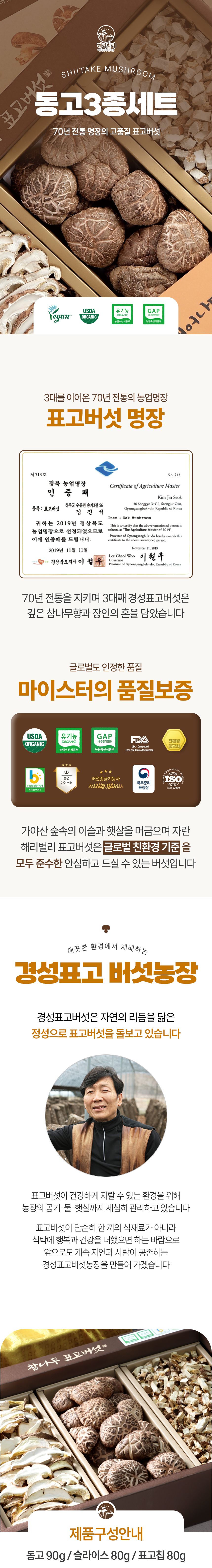 참나무원목재배 유기농 동고 3종세트 표고버섯선물세트