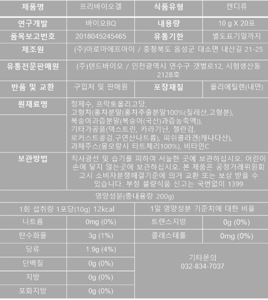 • 프리바이오겔 콜라겐 타트체리 프리바이오틱스 비타민C 바이오BQ