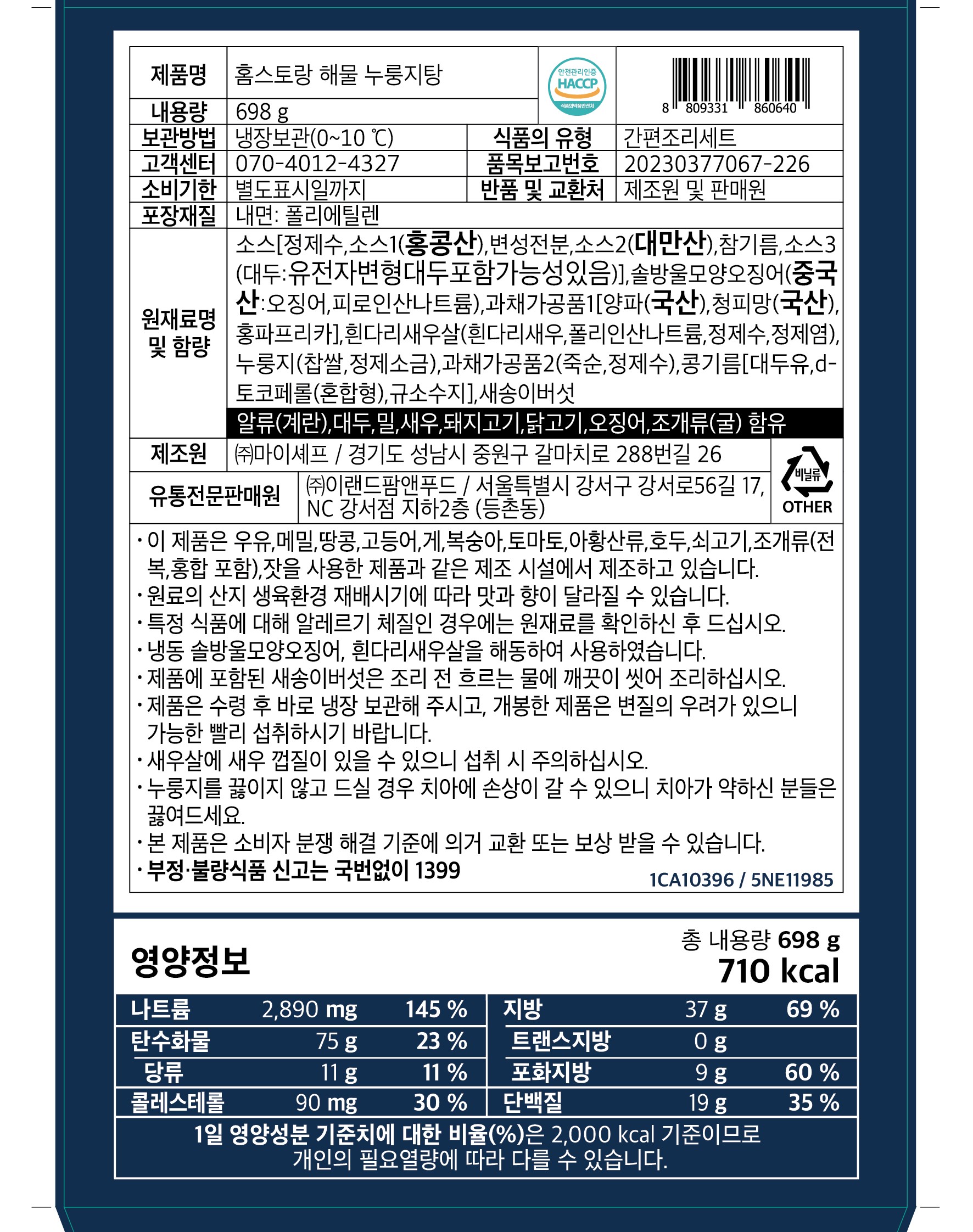 - 원재료명 및 함량